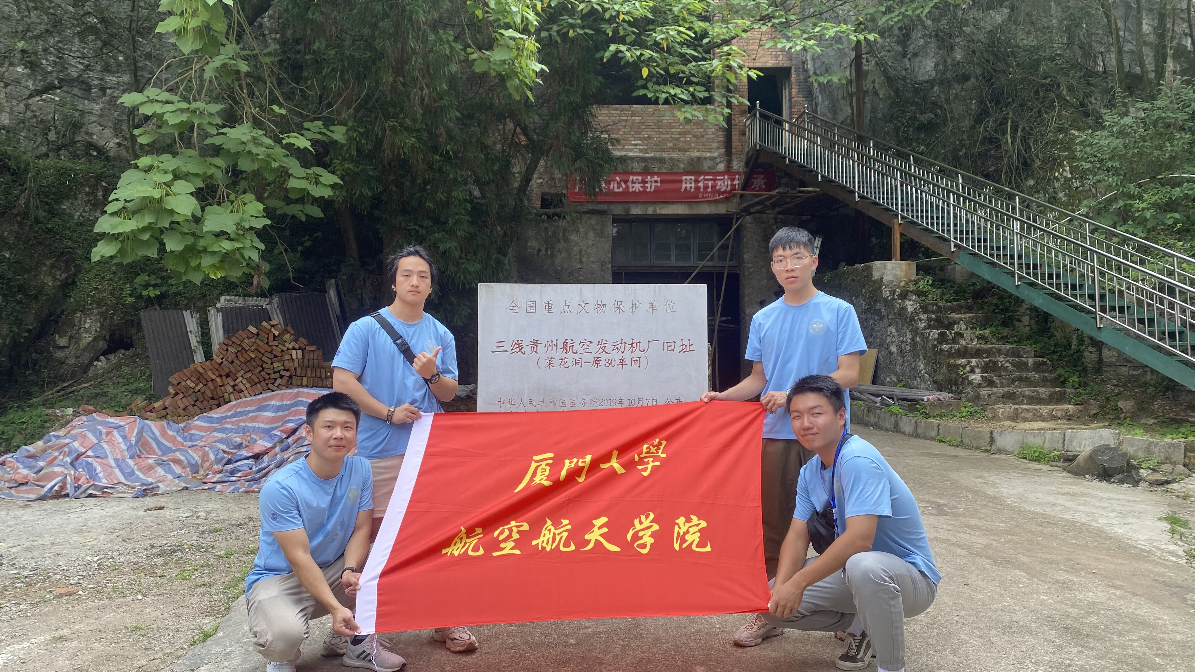 为深入开展学习贯彻习近平新时代中国特色社会主义思想主题教育,进一步追寻红色足迹、传承红色基因、坚定强国信念,切实落实好“学思想、强党性、重实践、建新功”的主题教育总要求,7月13日至15日,厦门大学航空航天学院“追光逐梦”实践队赴贵州省黎阳航空小镇和遵义会议旧址进行参观学习,感悟红色精神。