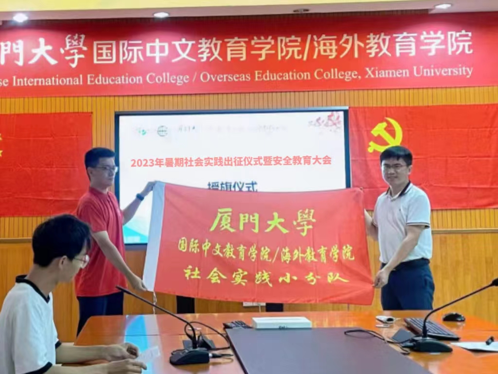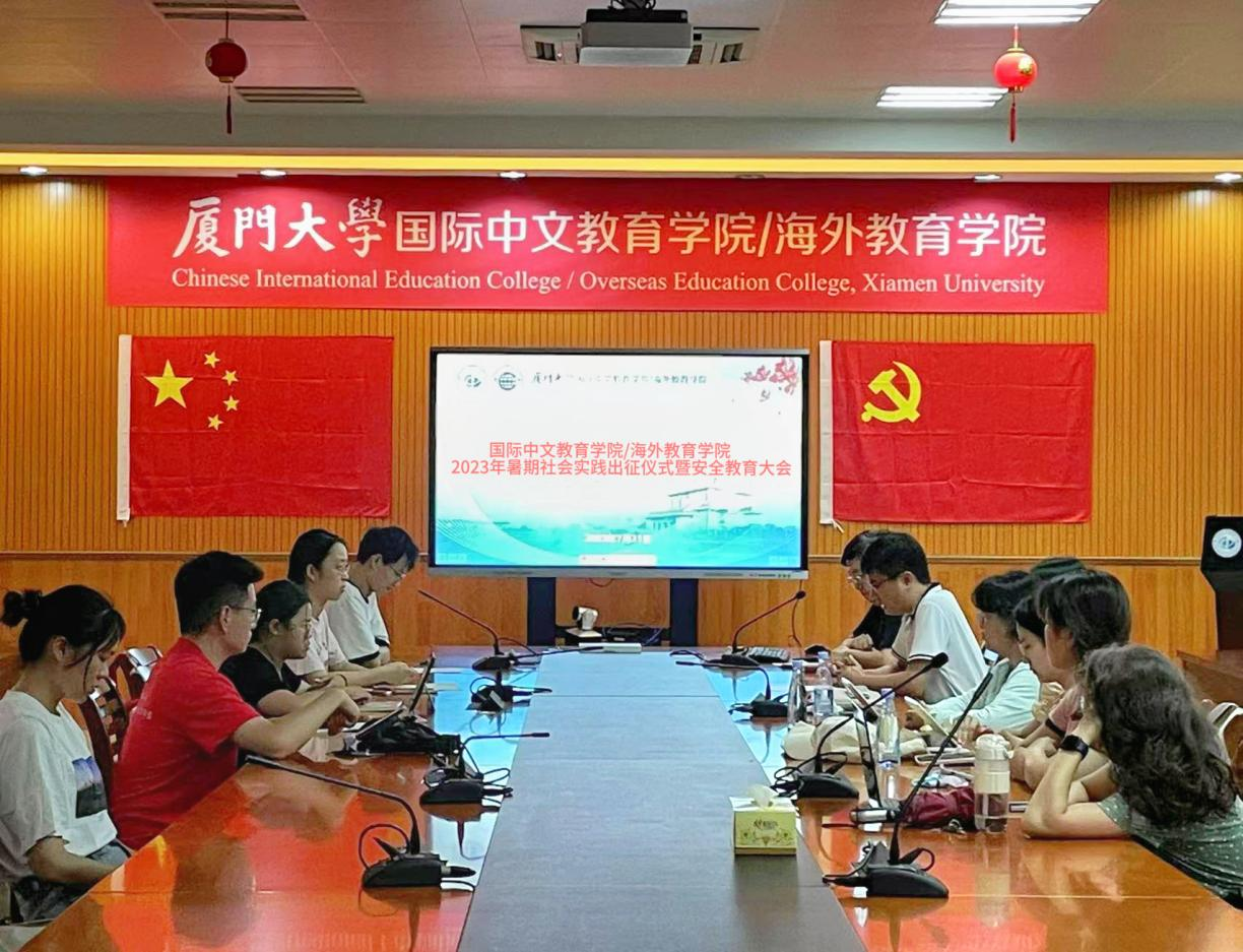 7月21日下午,国际中文教育学院/海外教育学院2023年暑期社会实践出征仪式暨安全教育大会在翔安校区坤銮楼C104会议室举行。学院党委副书记林明华、辅导员林炯,以及各实践队员代表参加,仪式由党政辅导员姜立恒主持。