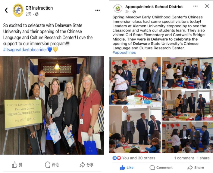 据悉,该中心由厦门大学与特拉华州立大学于2022年6月达成合作共建协议,经过一年多的筹备,顺利揭牌投入运营。揭牌仪式结束后,方颖副校长一行还参观了当地学区的中文沉浸式课堂。