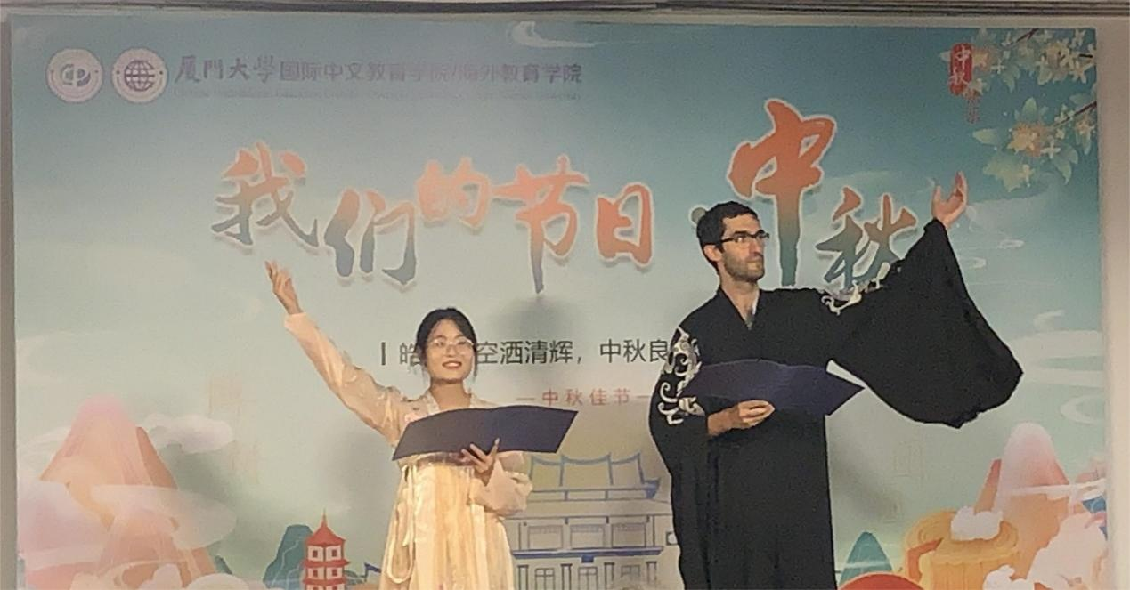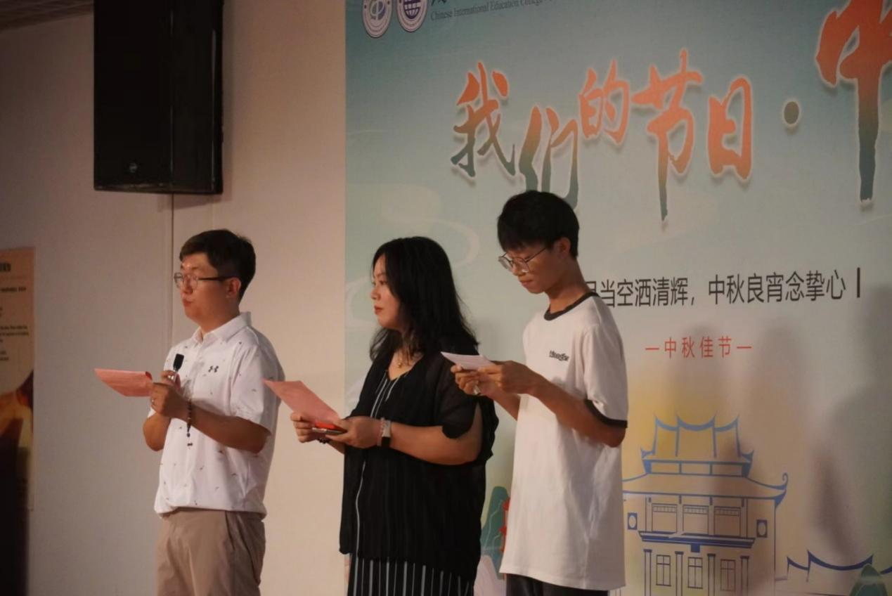 紧接着,精彩纷呈的传统文化表演让大家沉浸在浓厚的节日氛围中。来自中国的柴莹莹与土耳其的白凯共同朗诵的《水调歌头》,表现出对花好月圆人长久的美好祝愿;来自中国的孙维茁、俄罗斯的安妮和尼日利亚的张淑窈、倪好、白乐知五位同学联袂带来的《太极功夫扇》表演,行云流水,一气呵成,展现出刚柔并济、动静相宜的中国武术之美。