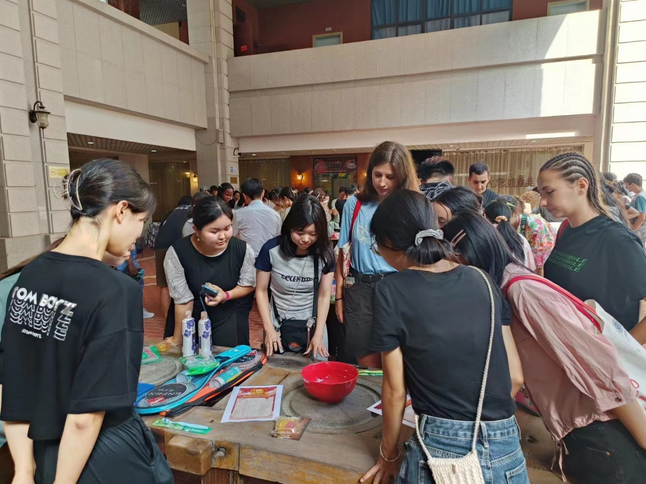 妙趣横生的“博饼”环节也将本次活动推向高潮。全场投掷声清脆悠扬、此起彼伏。十桌同台,每桌均由中外学生组成。同学们在轻松愉快的氛围中深入交流,感受到了中华文化的独特魅力。