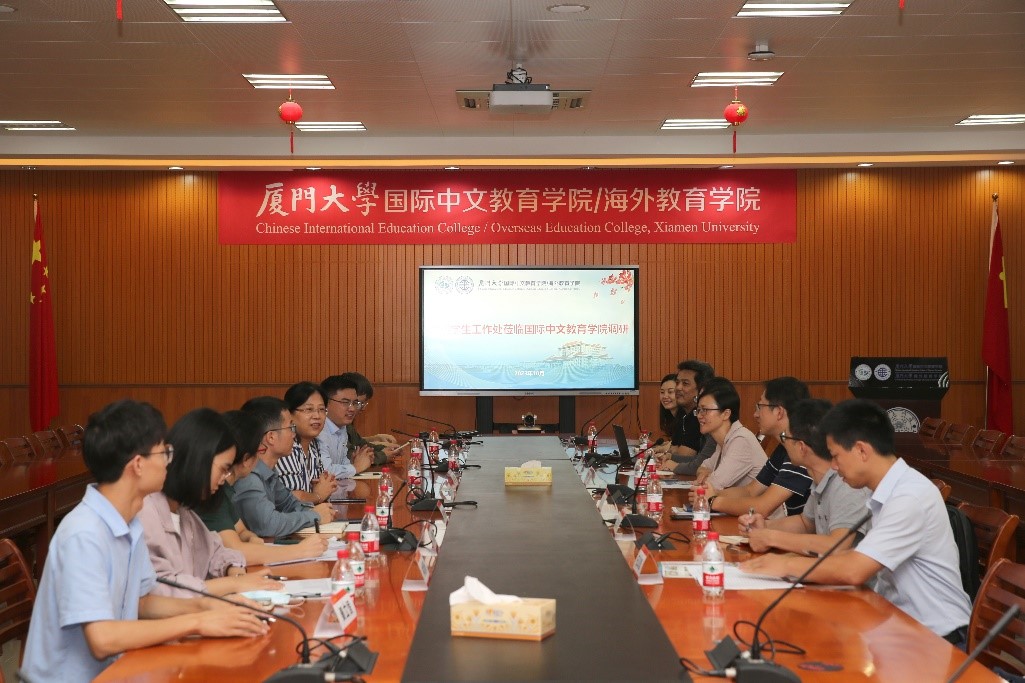 10月12日下午,厦门大学学生工作部(处)部(处)长洪春生、副部(处)长刘俊英、副部(处)长、翔安校区学生办主任高斌等一行到访我院,就学院学生工作开展专题调研。国际中文教育学院/海外教育学院党委书记范丽、院长陈志伟、党委副书记林明华以及全体辅导员参加会议。