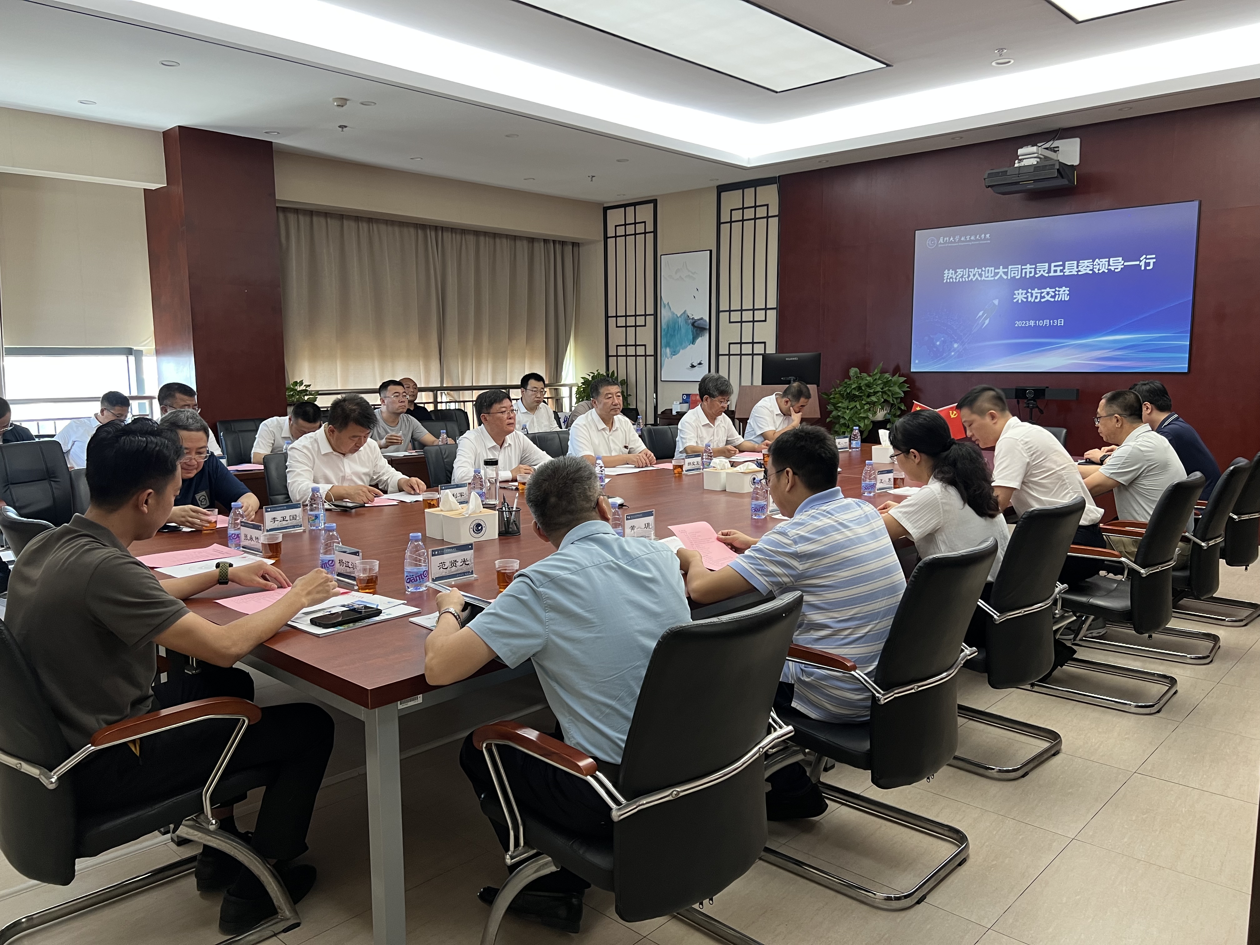 10月13日上午,大同市灵丘县考察团一行来访厦门大学航空航天学院并举行签约仪式。大同市委常委、灵丘县委书记周鹏,灵丘县政协主席郝宝玉,县委常委、组织部部长王利军,副县长钟灵臣,通航中心主任房卫,航空航天学院党委副书记林蔚,副院长黄玥等出席会议,会议由航空航天学院党委副书记王寒主持。