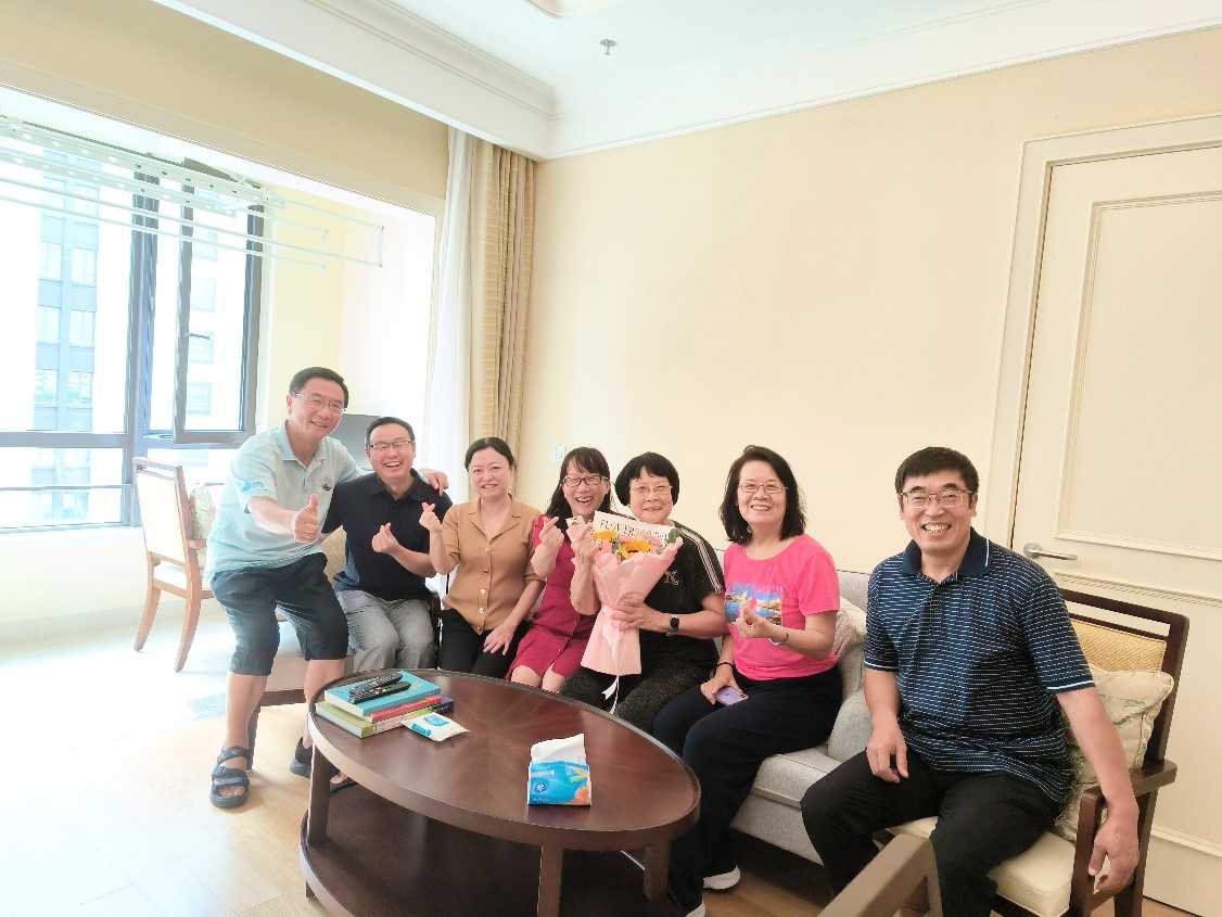 参观交流结束后,刘莉颖、陈荣等前往鹭园A区,探望不久前入住社区的学院退休教师洪华生老师。