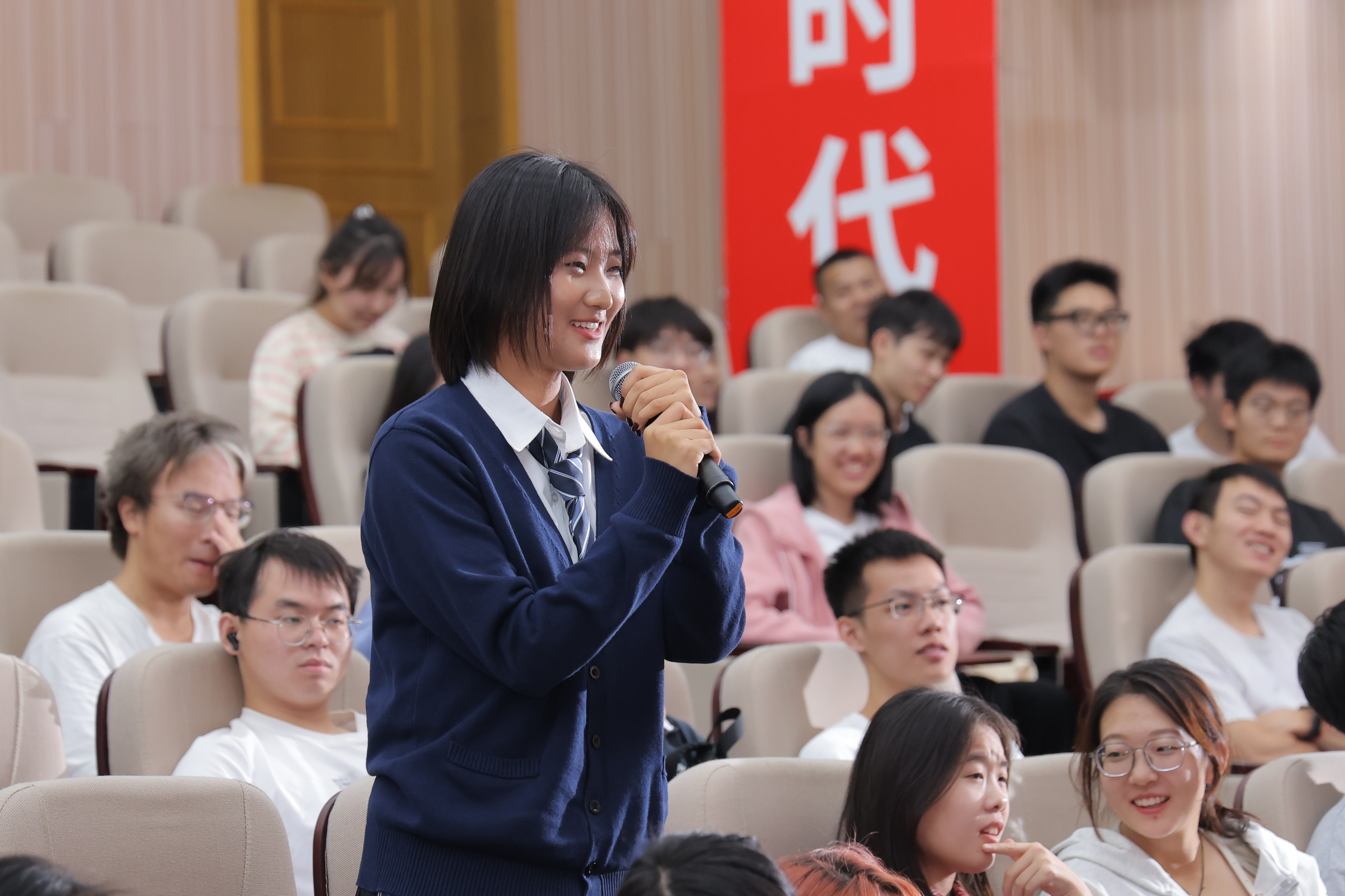 现场互动积极热烈,来自外文学院、新闻传播学院、电子科学与技术学院等同学们对季小军老师在央视主持这份工作充满好奇,踊跃地提出了各种与日常学业、未来发展等息息相关的问题,如英语专业学习建议、面临选择时的困扰、在大型场合如何克服表达的紧张感以及在当下传统媒体受自媒体冲击下如何创造受众喜爱的内容等。季小军对同学们的提问一一耐心解答,在场师生表示受益匪浅,启发同学们对未来的思考和规划。