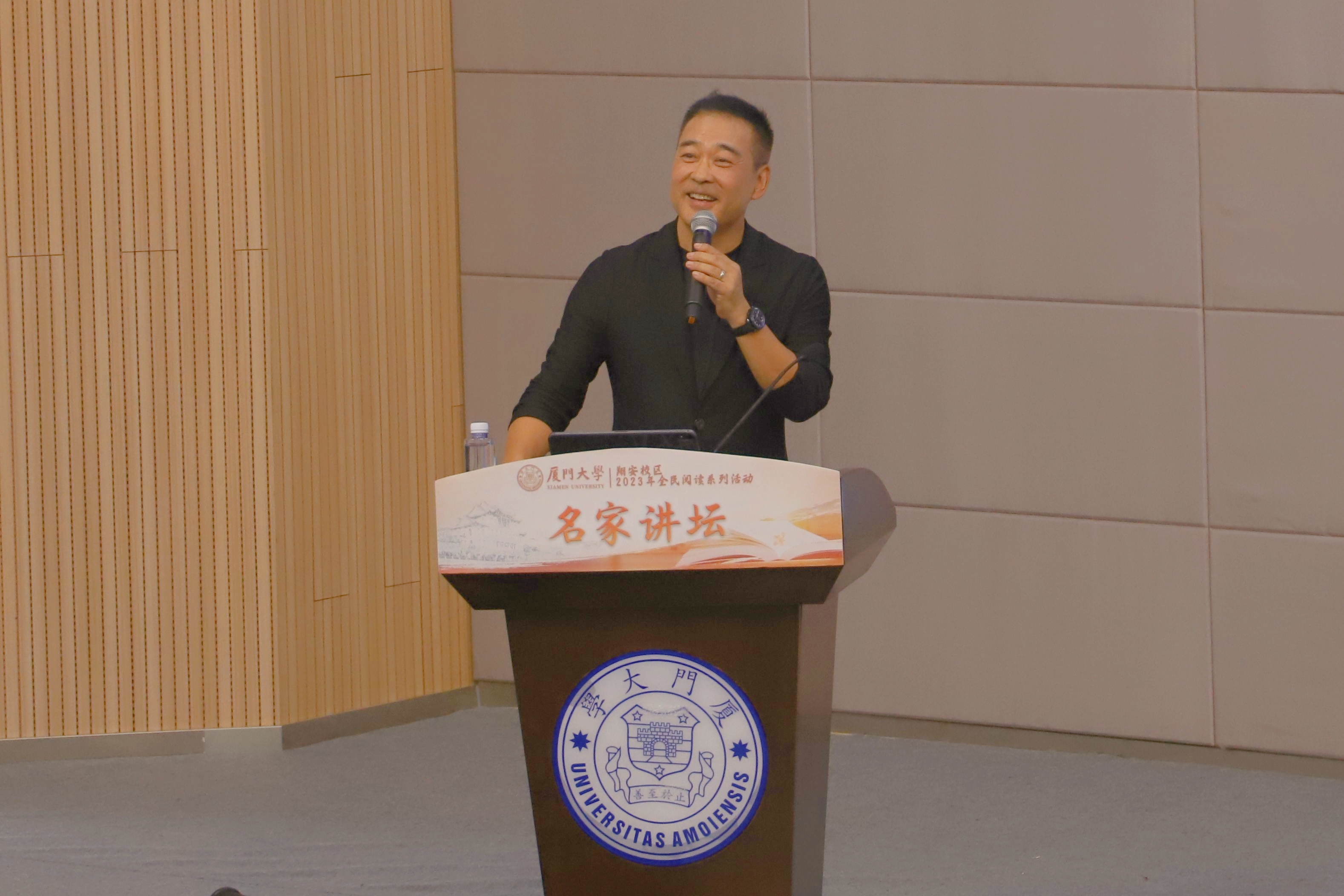 11月12日下午,厦门大学翔安校区2023年全民阅读系列活动之名家讲坛——“从文字到表达”在德旺图书馆二号报告厅举行。原中央电视台英语频道主持人、中国播音主持金话筒奖获得者季小军应邀主讲,厦门大学翔安校区管委会副主任马龙出席并致辞。