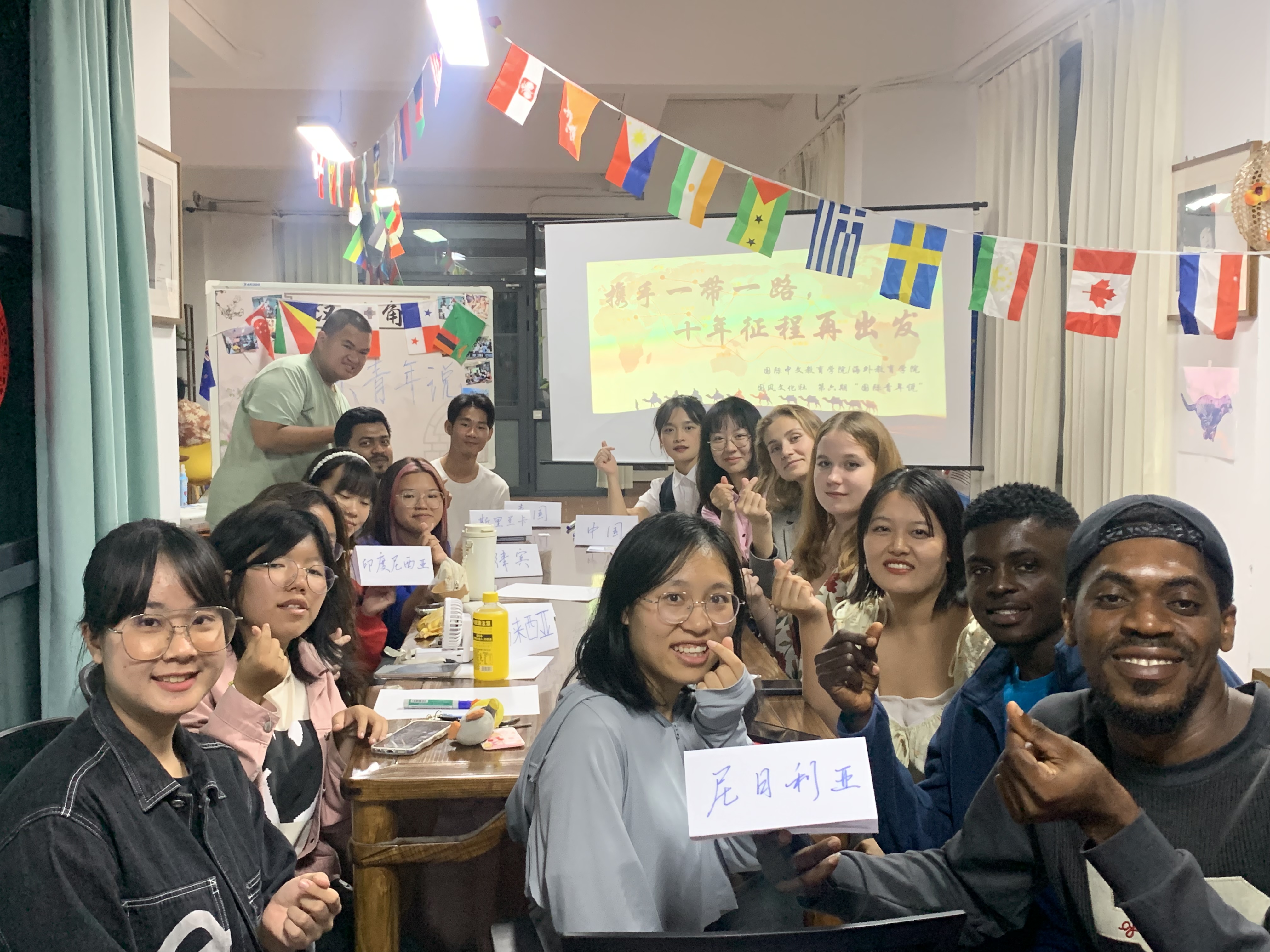 今年是共建“一带一路”倡议提出十周年,从中国倡议走向国际实践,“一带一路”为共同推动构建人类命运共同体注入了新动能。11月9日,国际中文教育学院/海外教育学院在翔安校区国光2“一站式”学生社区举办“十年‘丝路’绘硕果,国际青年话心声”——“国际青年说”活动,邀请了来自泰国、菲律宾、尼日利亚、俄罗斯、斯里兰卡、马来西亚等国来华留学生就“一带一路”与自身学习和生活的经历进行自由开放的讨论,深入了解“一带一路”倡议在世界各国舞台上所展现的多元互动的文明图景。国际中文教育学院辅导员、部分中外学生参加,国际中文教育学院研究生、国风文化社联络部负责人杨泽義主持。
