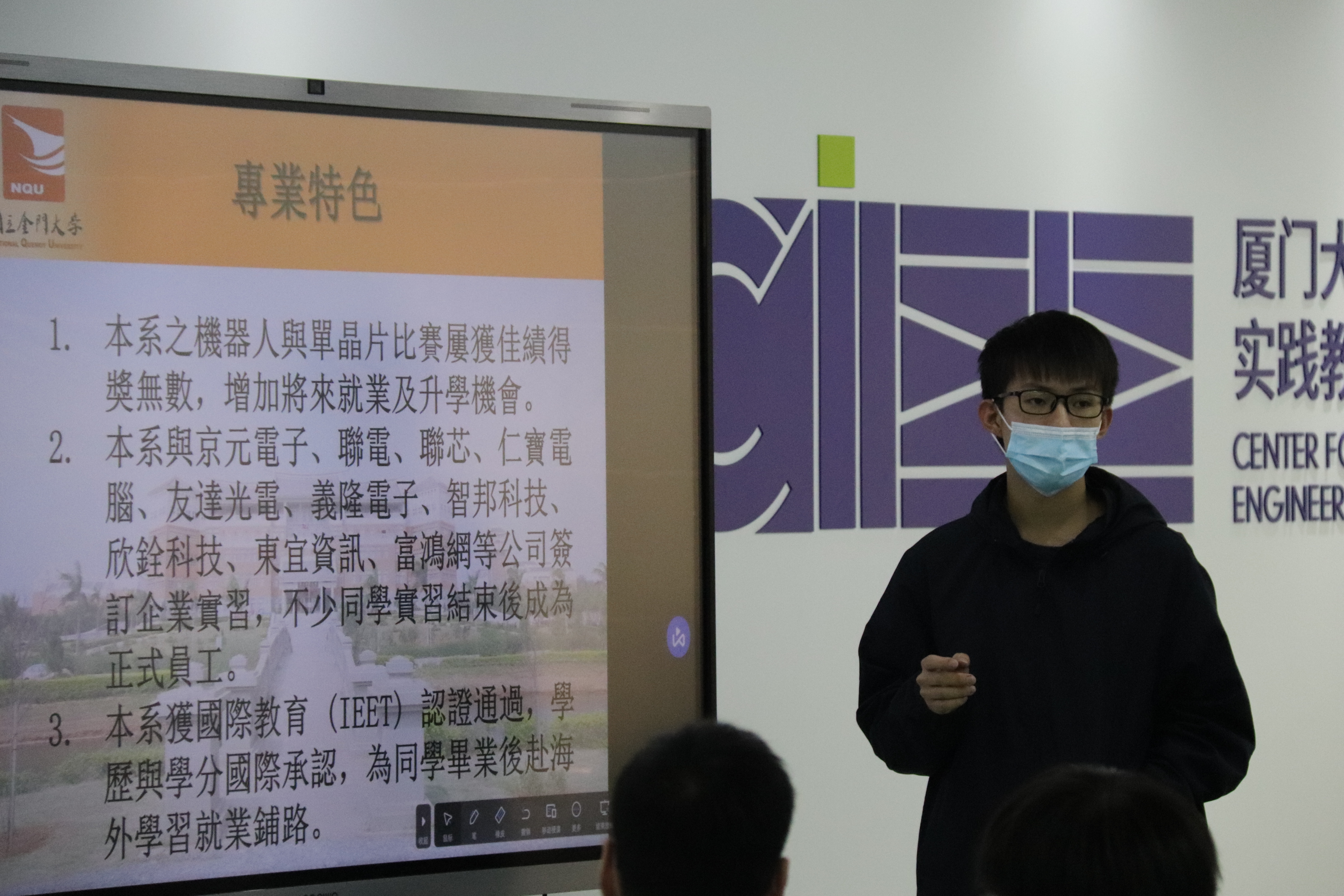 来自金门大学的陈冠廷从学习课程、就业情况方面介绍金门大学工科人才的培养模式,同时也展示了近年来金门大学参与各类科创赛事的优异成果,以及在社会服务方面为金门当地中小学提供的多项优质科创体验课程。