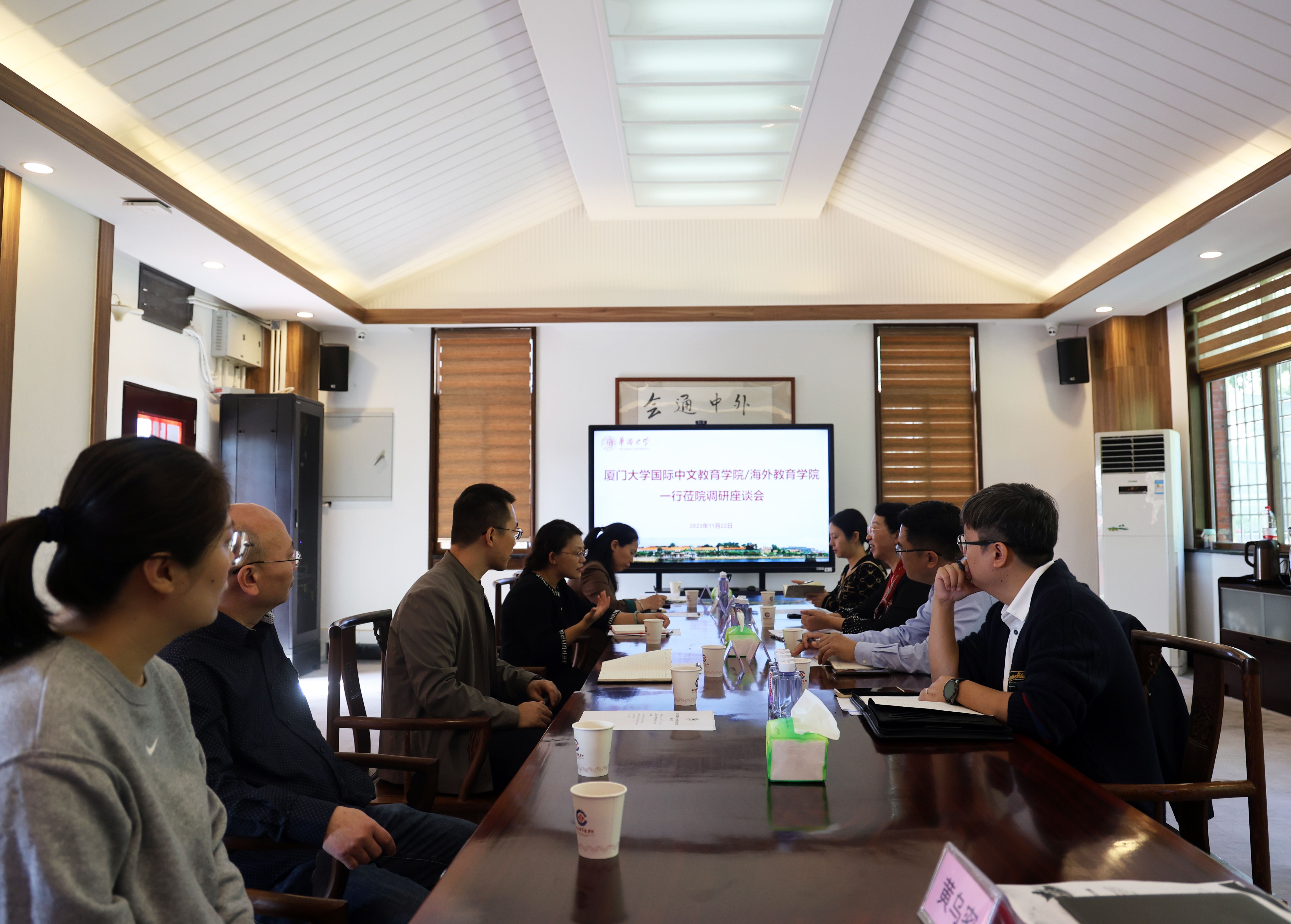 为更好开展国际学生招生和管理服务工作,11月22日上午,国际中文教育学院/海外教育学院党委书记范丽、党委副书记林明华、招生科彭丹和学生科林炯一行到华侨大学华文学院调研,与华侨大学华文学院党委书记袁媛、副院长潘夏星等座谈交流。