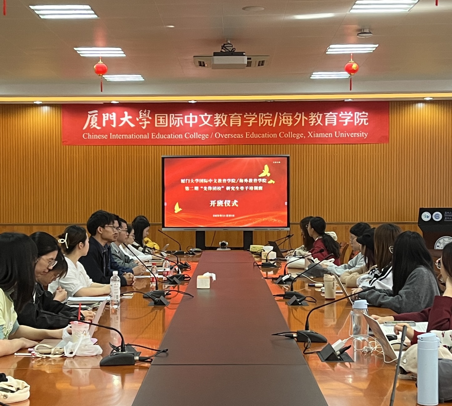 11月23日中午,国际中文教育学院/海外教育学院第二期“先锋团校”研究生骨干培训班开班仪式于翔安校区坤銮楼C104举行。学院党委副书记林明华、团委书记陈艺新、辅导员姜立恒及2023级全体研究生学生干部参加仪式。院研究生会主席团成员陈晓柯主持仪式。