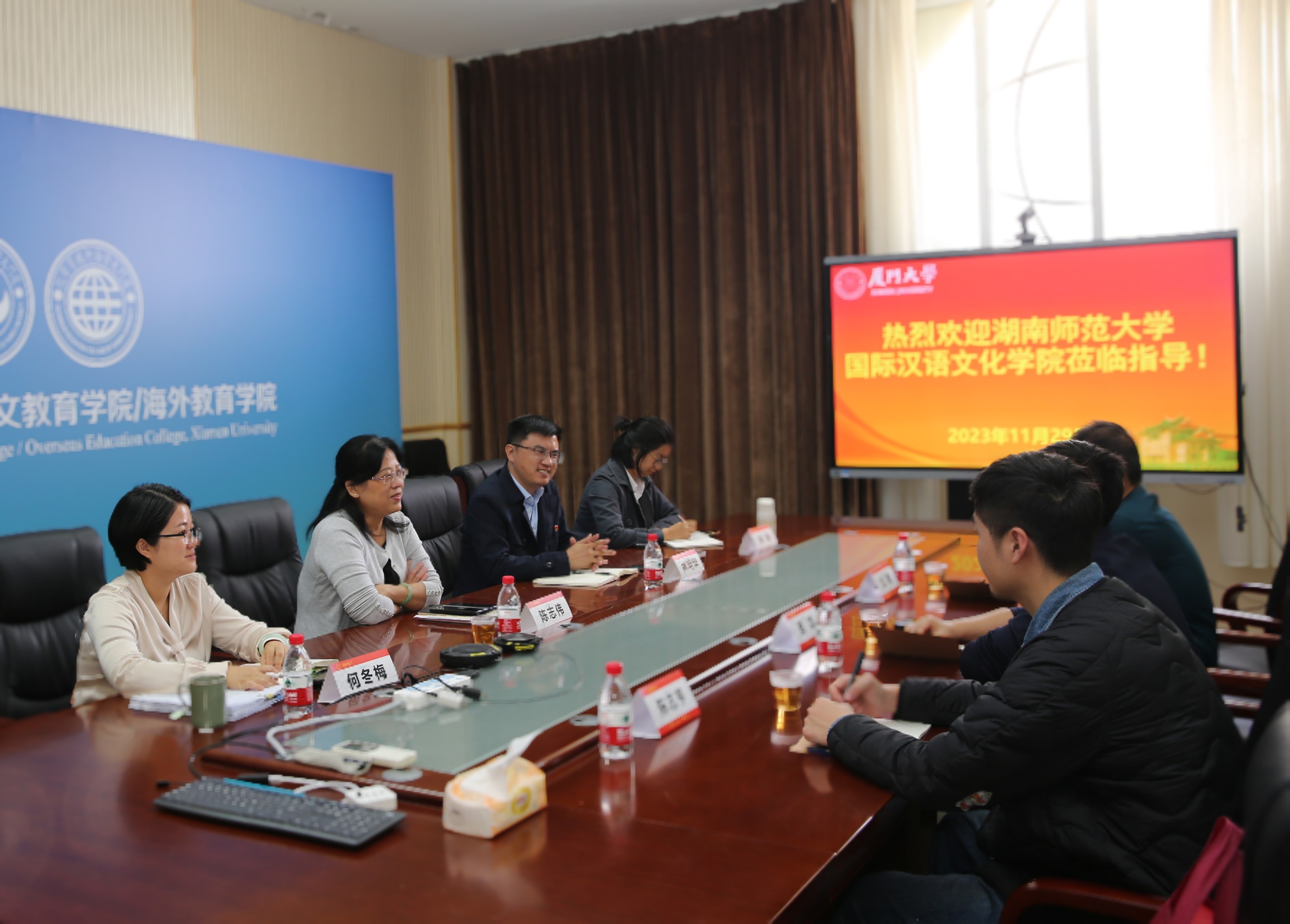11月29日上午,湖南师范大学国际汉语文化学院院长蔡颂、副院长沈敏、科研助理陈志亨一行访问我校国际中文教育学院/海外教育学院。国际中文教育学院/海外教育学院院长陈志伟、党委副书记林明华、厦门大学中外语言交流合作中心副主任何冬梅、林琳参加会谈。