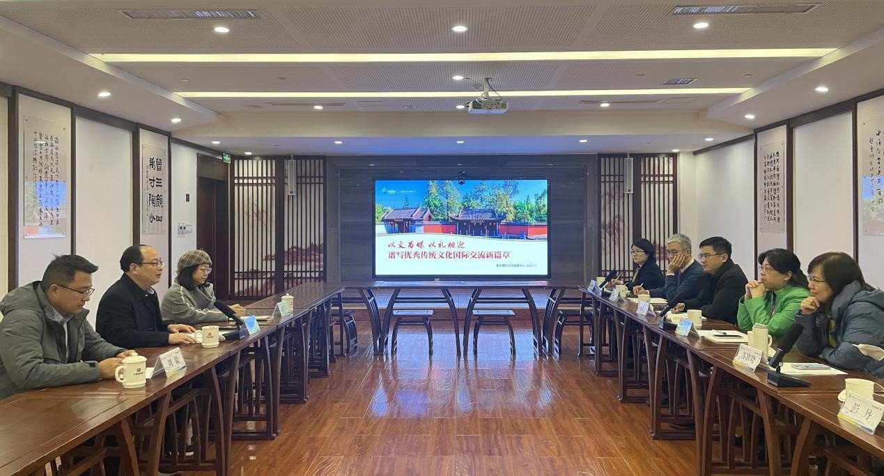 12月30日,陈志伟一行访问衢州南孔文化发展中心,在衢州市文旅局党委委员、南孔文化发展中心主任盛雄生、产业科科长周毅的陪同下,实地考察了衢州孔氏南宗家庙、中国儒学馆,并开展了座谈交流。座谈会上,双方就如何更好地开展留学生实践活动进行了深入交流。