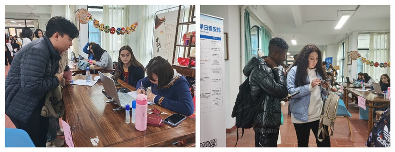 学院国内国际的志愿者们为远道而来的国际新生提供热心帮助。志愿者们驻守岗位,从校门到迎新点,为新生提供细致耐心的服务。国内研究生杨怀瑶、沈欣悦等同学引导大家寄存行李,有序注册;来自俄罗斯的雯雯、艾林,来自柬埔寨的陈婉清,菲律宾的李闽红,马里的吉伯骏等同学在迎新点协助新生办理注册手续;来自印尼的龚业圆、陈奕桦等热情带领前来报道的同学办理入住;来自泰国的周惠玲同学帮助各新生办理银行卡……从早到晚,让每一位到来的国际新生感受到学院的温暖与热情。