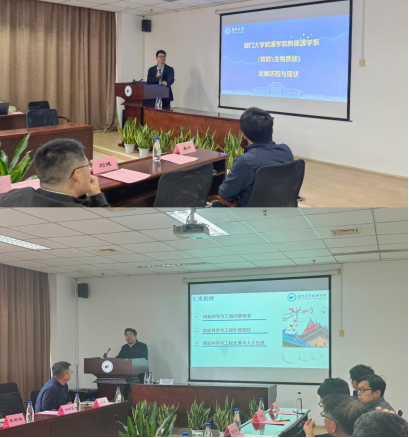 新能源学系系主任曾宪海和储能学系系主任李君涛分别作《新能源学系的发展历程与现状》《储能科学与工程暨人才引育工作》专题发言,各自围绕人员情况、教学科研、社会服务等方面,分析了学科发展面临的机遇和挑战,为学院建言献策。