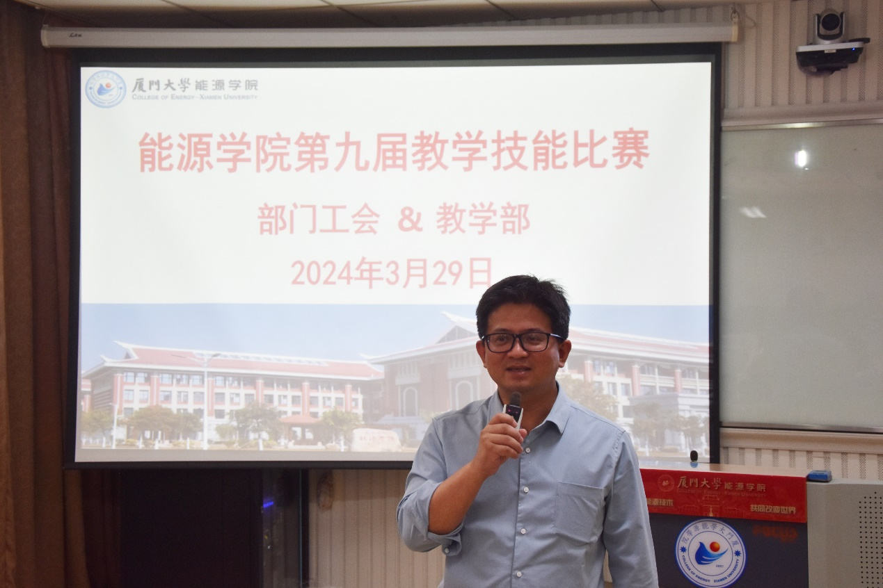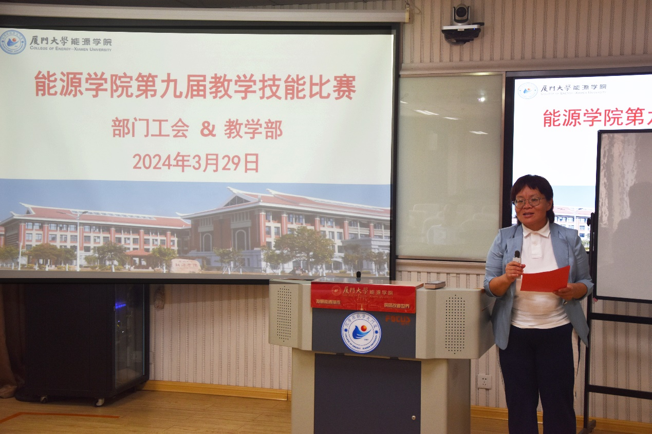 为全面贯彻党的二十大精神,提升教育质量,培养创新拔尖人才,加强新时代高质量教师队伍建设,全面推进“双一流”建设,3月29日能源学院部门工会和教学部共同举办了第九届教学技能比赛。物理科学与技术学院资深教授吴正云老师、能源学院张尧立老师、黄子敬老师和林志彬老师担任本次比赛专业评委,能源学院党委书记王洁松、党委副书记罗俊峰、副院长赵英汝,以及新能源学系和储能学系共二十余位教师共同出席了本次比赛。比赛由党委副书记罗俊峰主持。