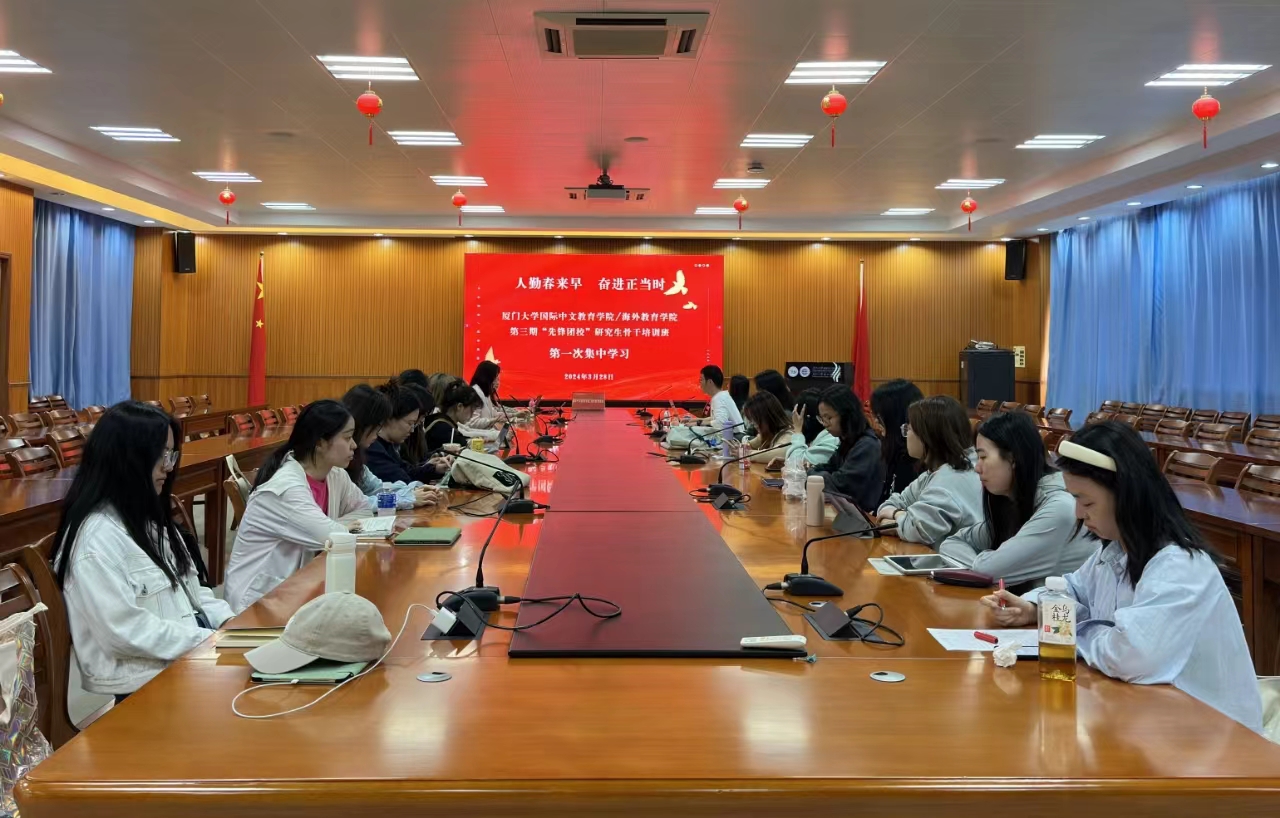 3月28日,国际中文教育学院/海外教育学院于坤銮楼C104举行第三期“先锋团校”研究生骨干培训班开班仪式。学院党委副书记林明华、团委书记陈艺新及2023级研究生骨干参加仪式。学院研究生会主席团成员陈晓柯主持仪式。