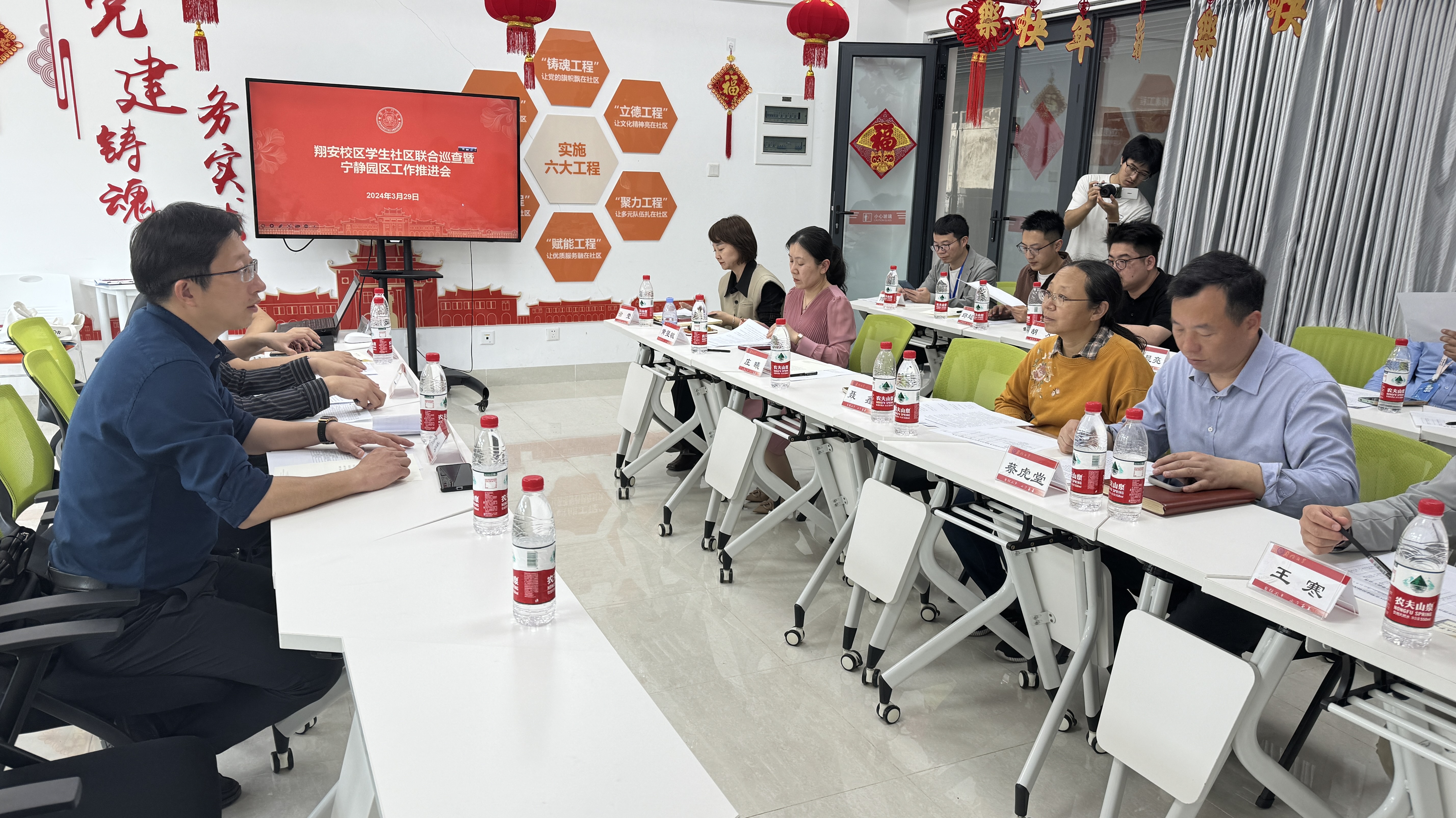 随后,在五期公寓“一站式”学生社区国光15-107党团活动室召开翔安校区“宁静园区”工作推进会。会上,学生办主任高斌通报了联合巡查中发现的问题、学校宿舍卫检安排、《翔安校区学生社区联合巡查方案》和“一站式”学生社区建设等。与会老师围绕学生队伍主体作用发挥、劳动教育开展、共享空间多元化建设和朋辈表彰激励机制等工作进行深入探讨和交流。