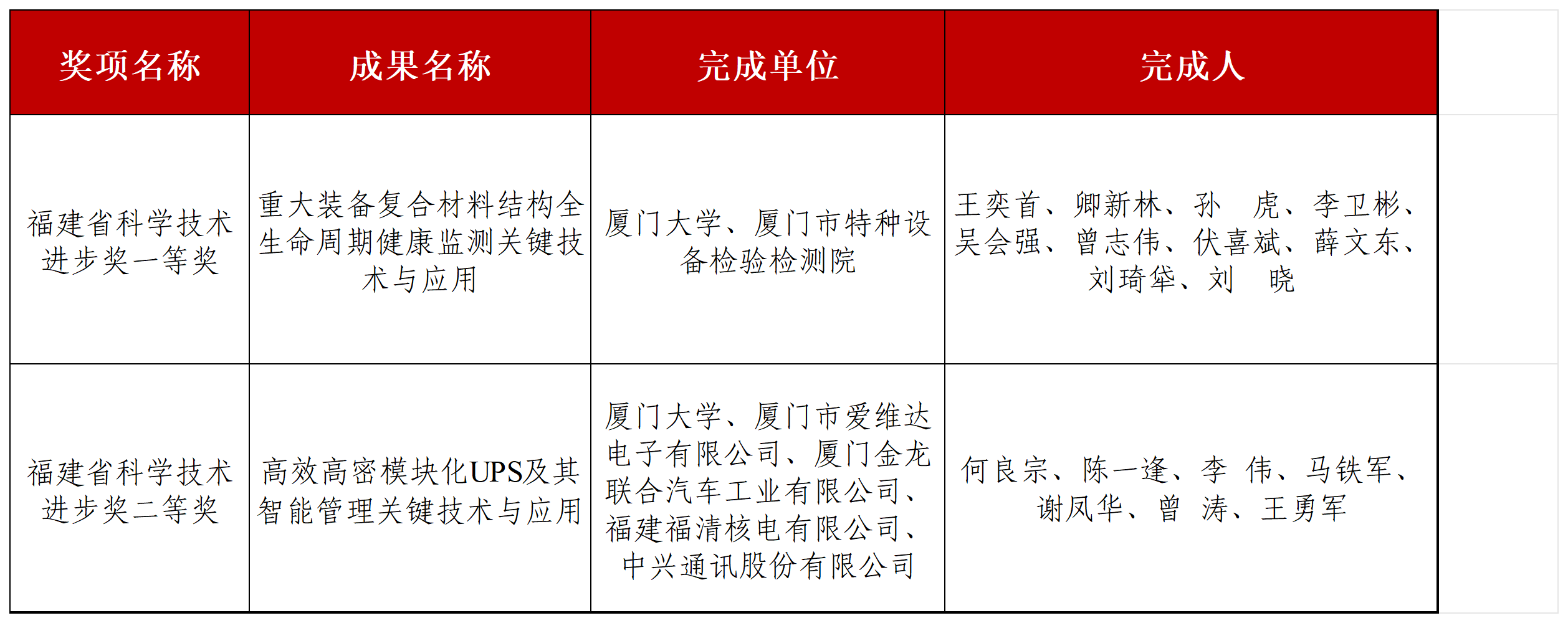 航空航天学院王奕首教授团队的科研成果“重大装备复合材料结构全生命周期健康监测关键技术与应用”荣获科学技术进步奖一等奖,何良宗教授团队的科研成果“高效高密模块化UPS及其智能管理关键技术与应用”荣获科学技术进步奖二等奖。
