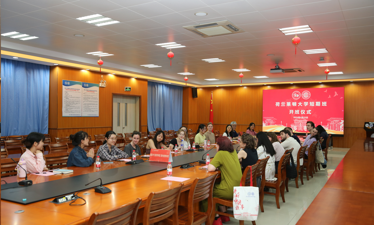 4月22日下午,荷兰莱顿大学短期汉语培训班开班仪式在翔安校区坤銮楼C104顺利举行,国际中文教育学院/海外教育学院华文系主任朱宇、副主任郭建花、招生科彭丹、辅导员关丽文等出席开班仪式。