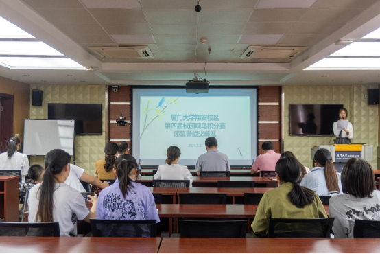 5月8日中午,厦门大学翔安校区第四届校园观鸟积分赛闭幕暨颁奖典礼在金泉楼A239举办。本次比赛由环境与生态学院、翔安校区教务办联合主办,厦门大学绿野协会承办。翔安校区教务办主任、教务处副处长何海涛、学院党委副书记蔡虎堂、副院长黄凌风等嘉宾以及各院参赛同学出席仪式。