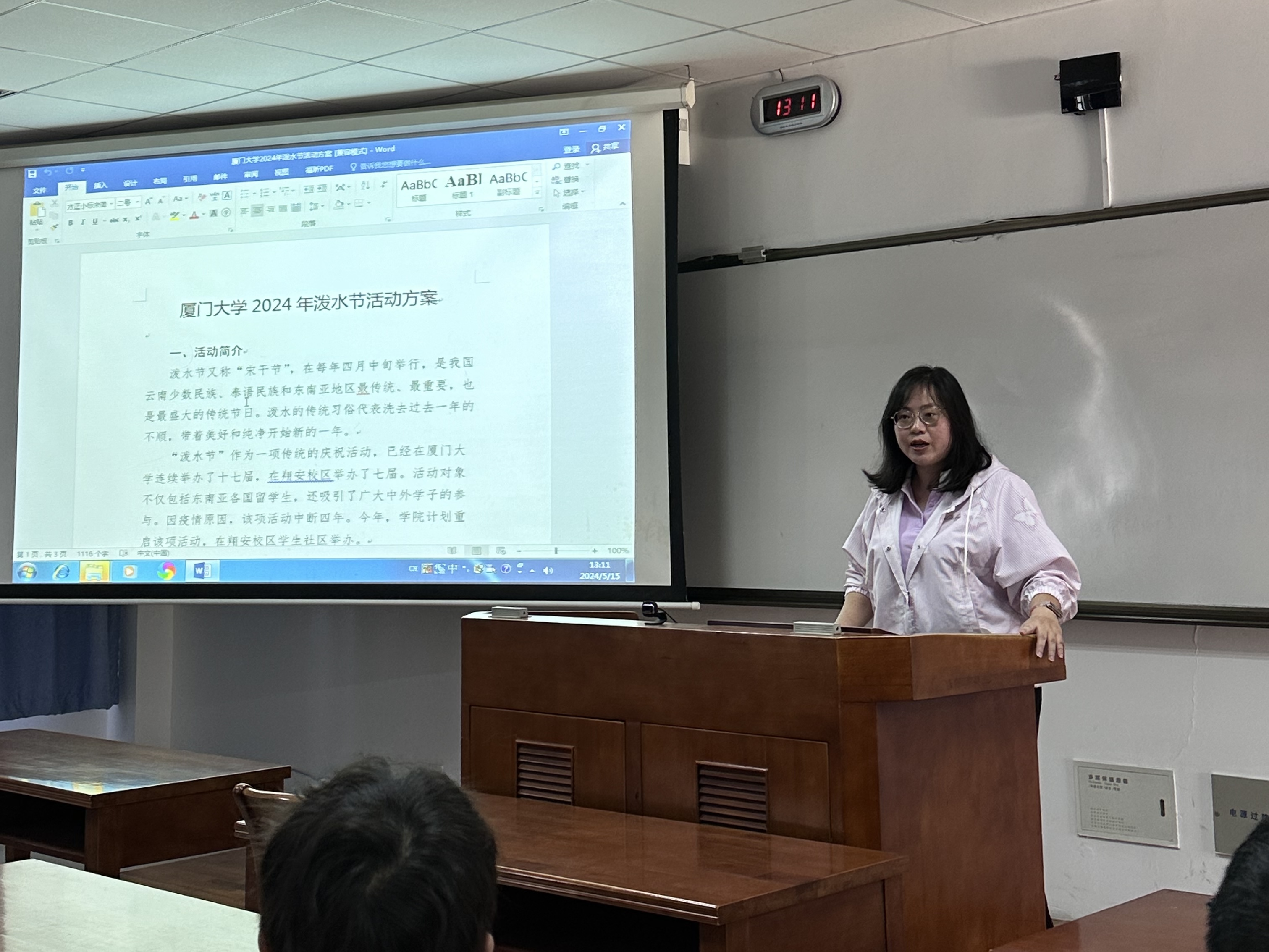 关丽文老师以泼水节为例,向大家阐述了活动策划与实施的关键环节。她指出,有效的前期沟通及协调是活动成功举办的基础,包括及时的宣传推广和与安全保卫、后勤管理等相关人员的对接。在确保活动顺利进行的同时,关老师强调了安全保卫方案的重要性。活动结束后也需及时进行宣传报道、发票整理等工作,保证活动圆满收官。