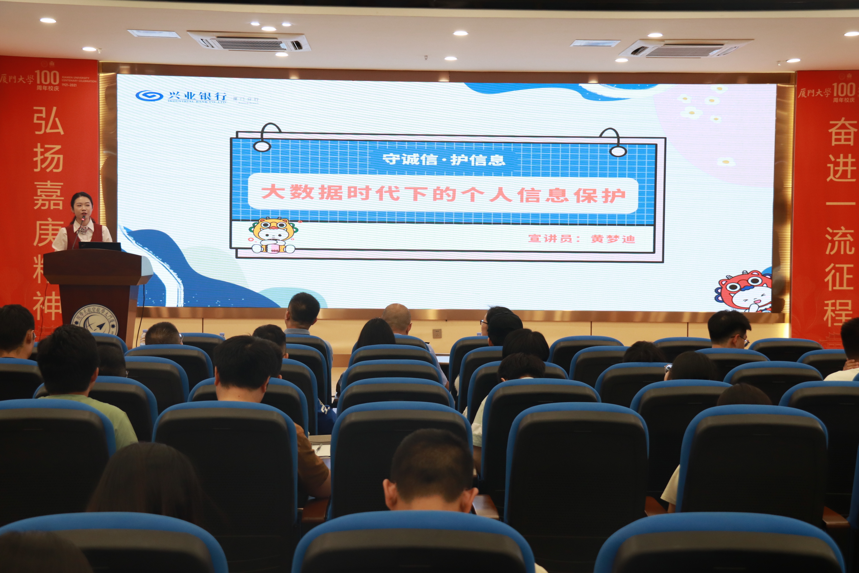 为进一步提高学生反诈防骗的安全意识与应对能力,筑牢安全防线,增强个人信息保护能力,6月4日,航空航天学院在院楼547报告厅开展反诈防骗专题安全教育专题讲座。讲座邀请到翔安区香山派出所朱昆尉警官与翔安校区兴业银行金融教育基地黄梦迪讲师作为主讲嘉宾。兴业银行厦门分行零售金融部总经理助理施晓梅,学院党委副书记王寒、团委书记郭江淮、辅导员董芬、于波及本研学生骨干参加讲座。