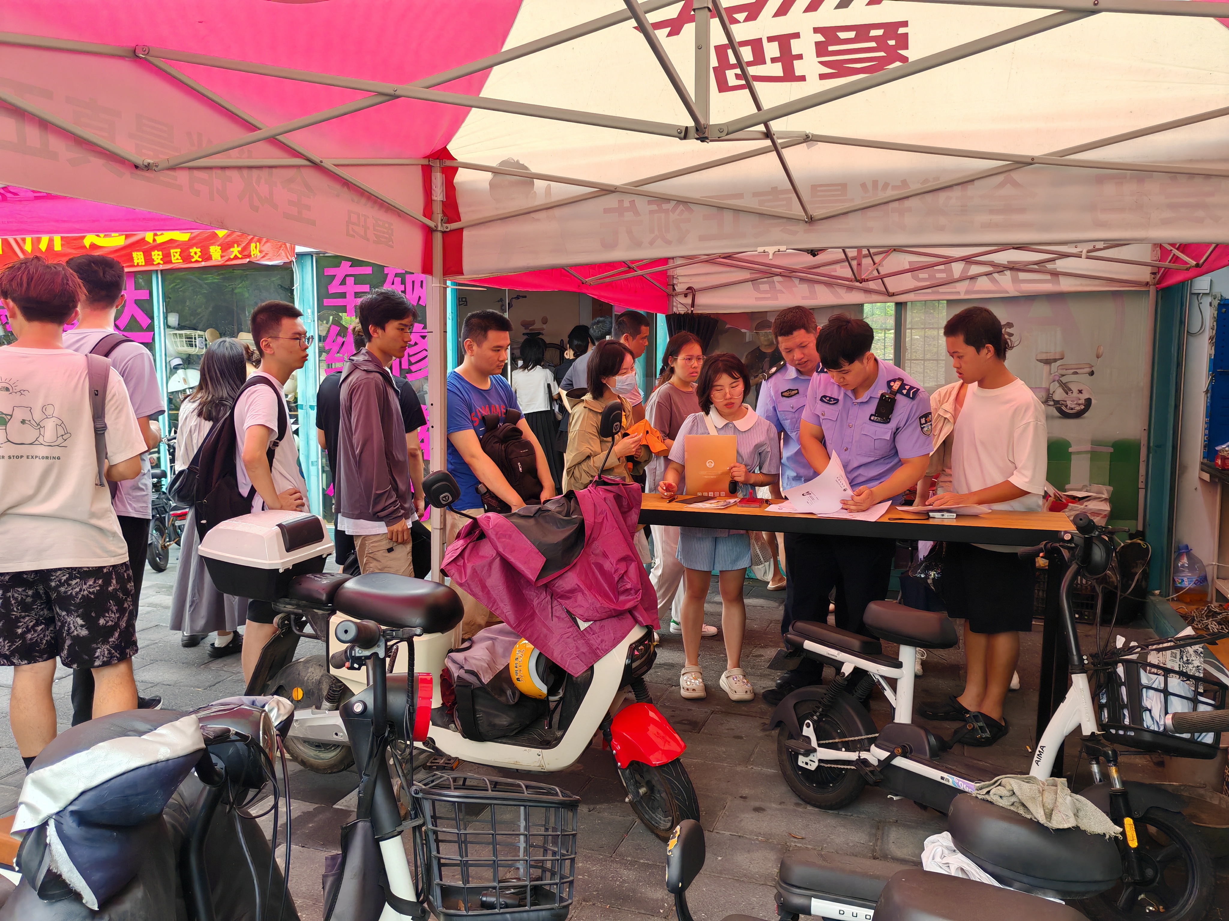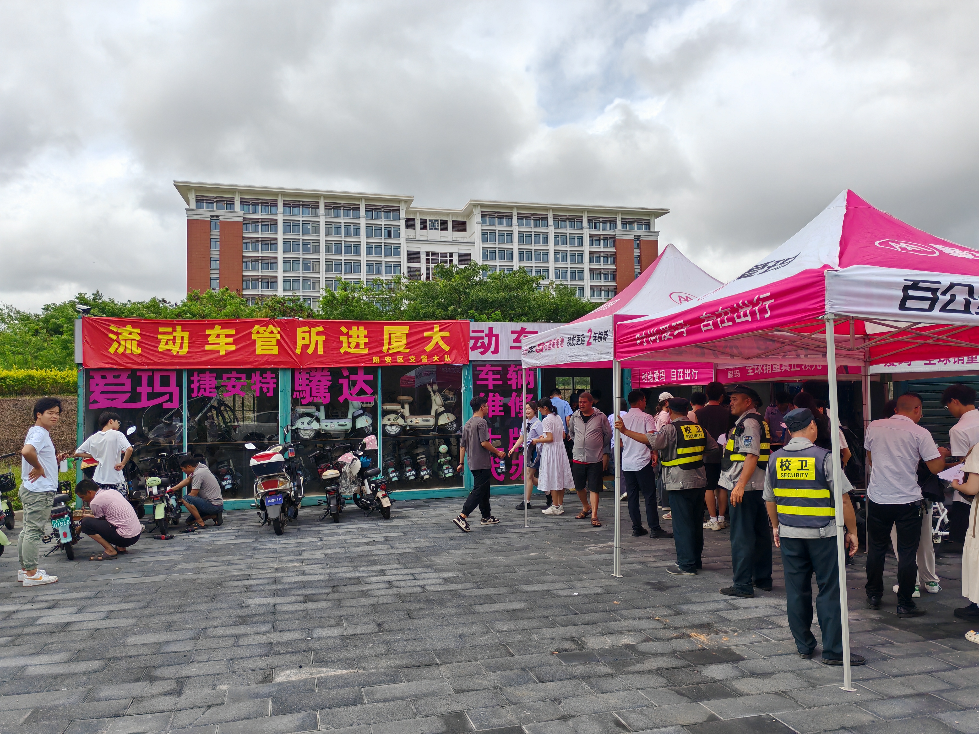 6月29日下午,翔安区交警大队应厦门大学翔安校区邀请,在校区电动自行车服务点开展“流动车管所进厦大”便民服务活动。此次活动旨在为毕业生提供方便,帮助他们顺利完成电动自行车过户,安心离校踏上新的征程。