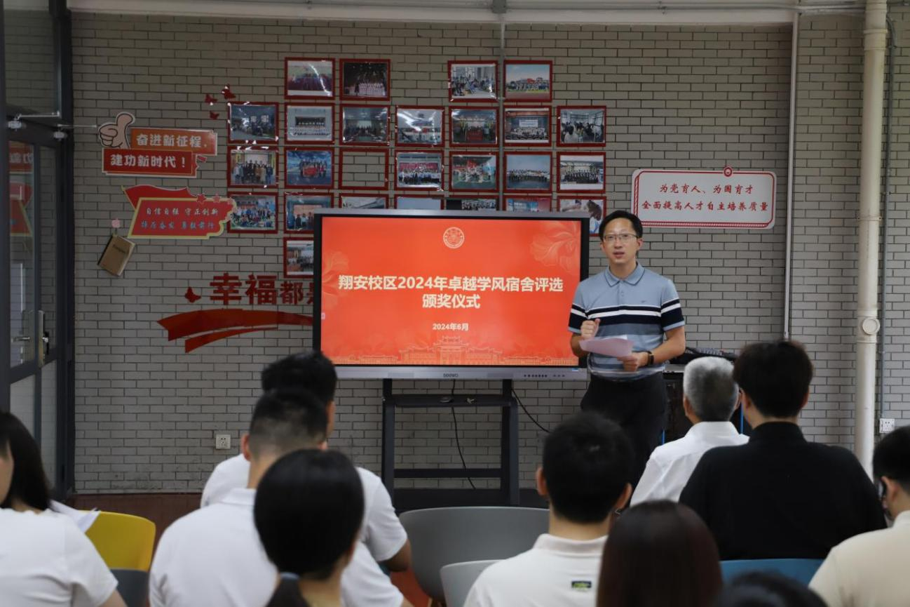 6月27日上午,翔安校区2024年卓越学风宿舍评选颁奖仪式在一期学生公寓芙蓉8美育室举行。翔安校区学生办主任、学生工作部(处)副部(处)长高斌,后勤集团翔安校区服务办公室主任汪尚谦以及翔安校区各学院公寓联络员、获奖宿舍成员、各学院生活督导部代表参加了颁奖仪式。