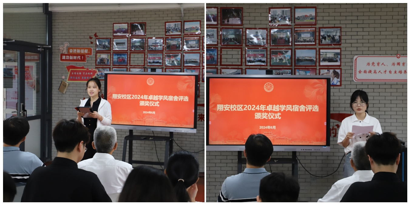 会上,汪尚谦宣读了翔安校区2024年卓越学风获奖宿舍名单,高斌、汪尚谦共同为获奖宿舍代表颁发荣誉证书。公共卫生学院杨颖、航空航天学院徐丽芬两位同学作为获奖宿舍代表分享了各自宿舍在日常学习生活、学风建设中的经验和心得,并表示将继续保持良好的学习和生活习惯,争取在未来取得更大的进步。