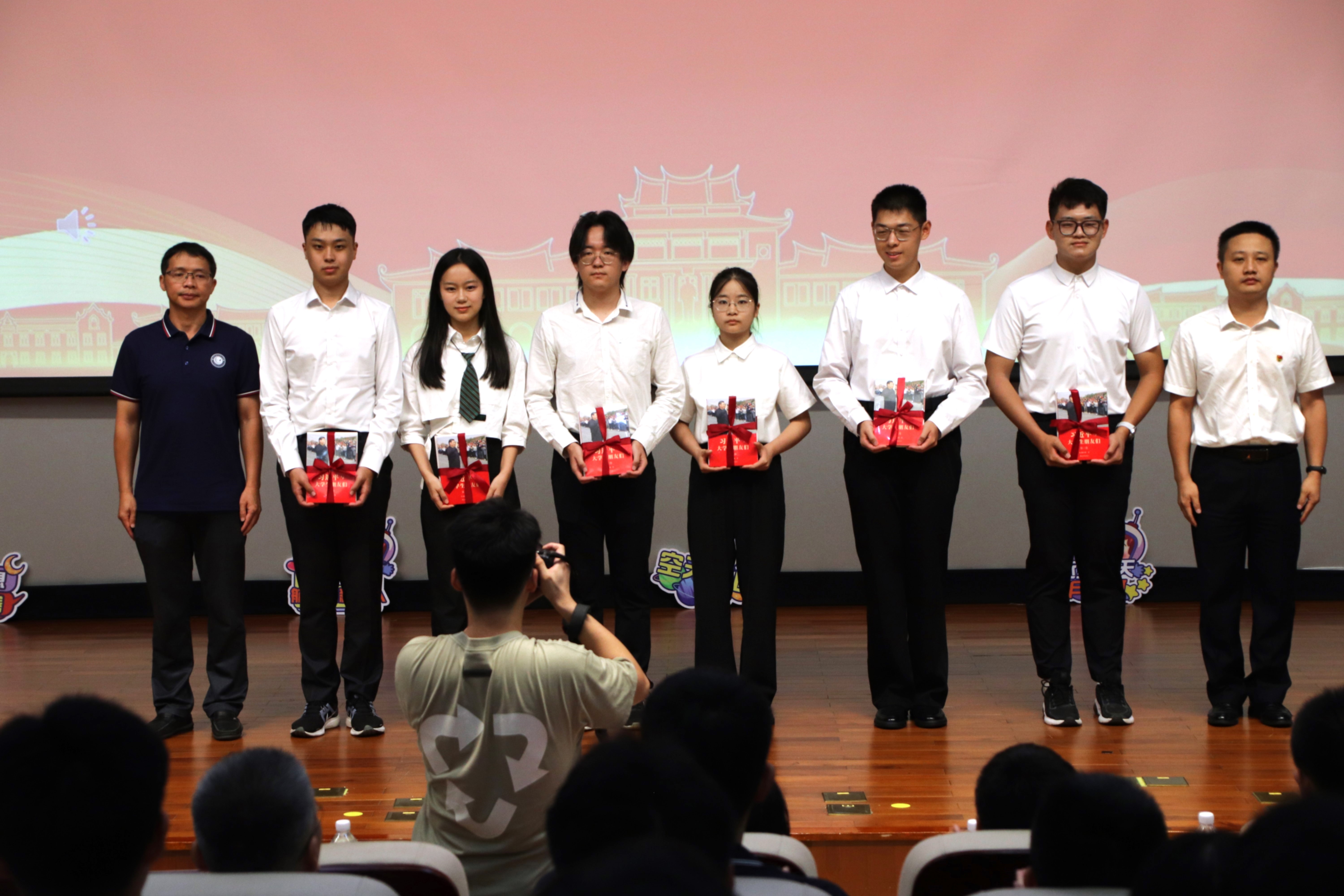 为了庆祝与新生们的相逢,典礼上举行了赠书仪式,王寒、王奕首为新生代表送上赠书并合影留念。赠书《习近平与大学生朋友们(第二卷)》彰显了学院对青年学子的殷殷期盼和炽热情感,赠书《厦门大学航空航天学院院史》记载着航院薪火相传的悠久历史和经久不衰的文化底蕴,激励着新一届的航院学子不畏风雨、乘风破浪。