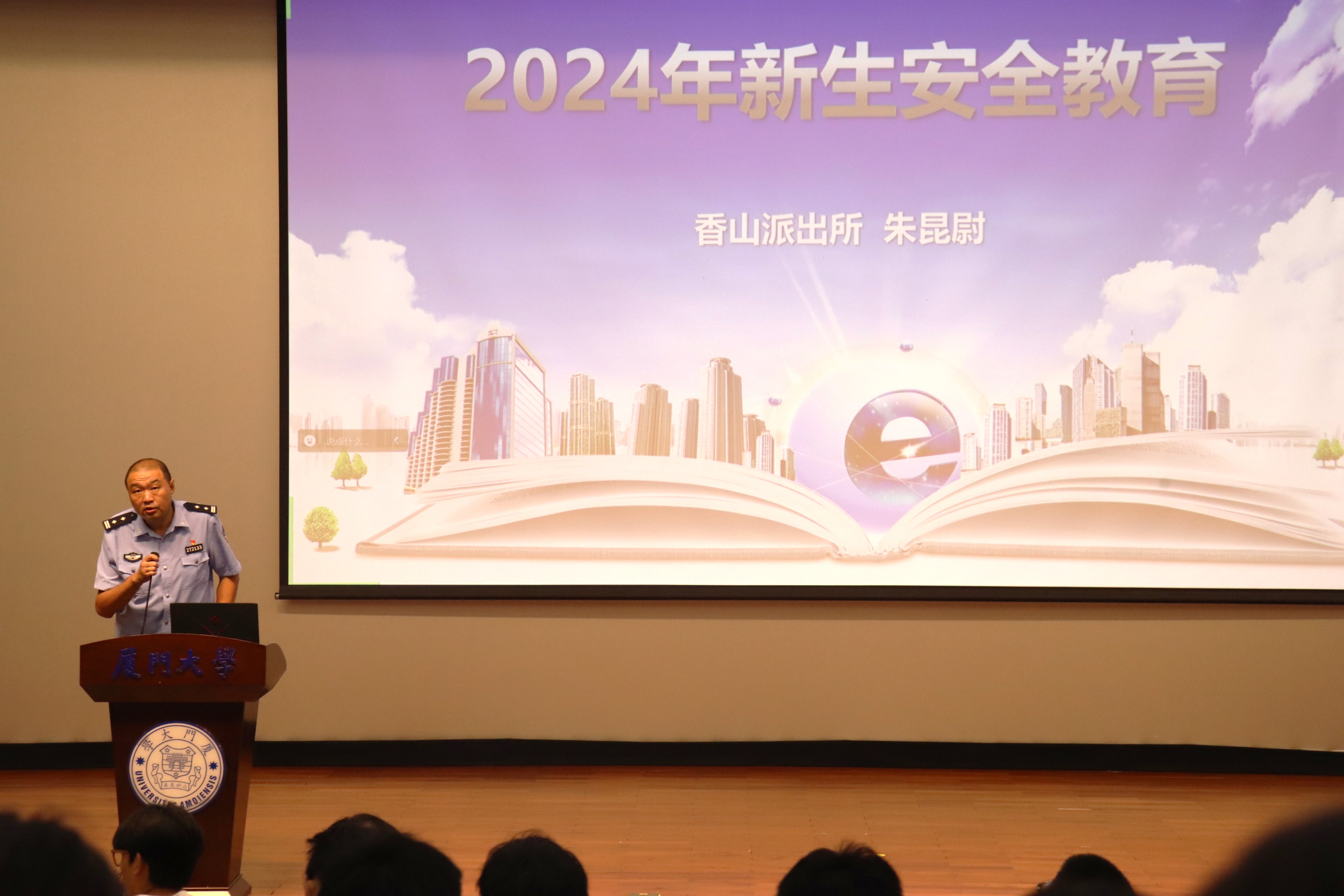 随着信息化与数字化时代的高速发展,我们在享受科技进步带来的高效与便捷的同时,新型诈骗暗流涌动,安全隐患不可忽视。为进一步提高学生反诈防骗的安全意识与应对能力,筑牢安全防线,增强个人信息保护能力,8月31日晚,航空航天学院邀请翔安区香山派出所朱昆尉警官在图书馆1号报告厅为2024级新生开展防诈骗专题安全教育讲座。学院团委书记郭江淮、辅导员董芬及2024级全体新生参加讲座。