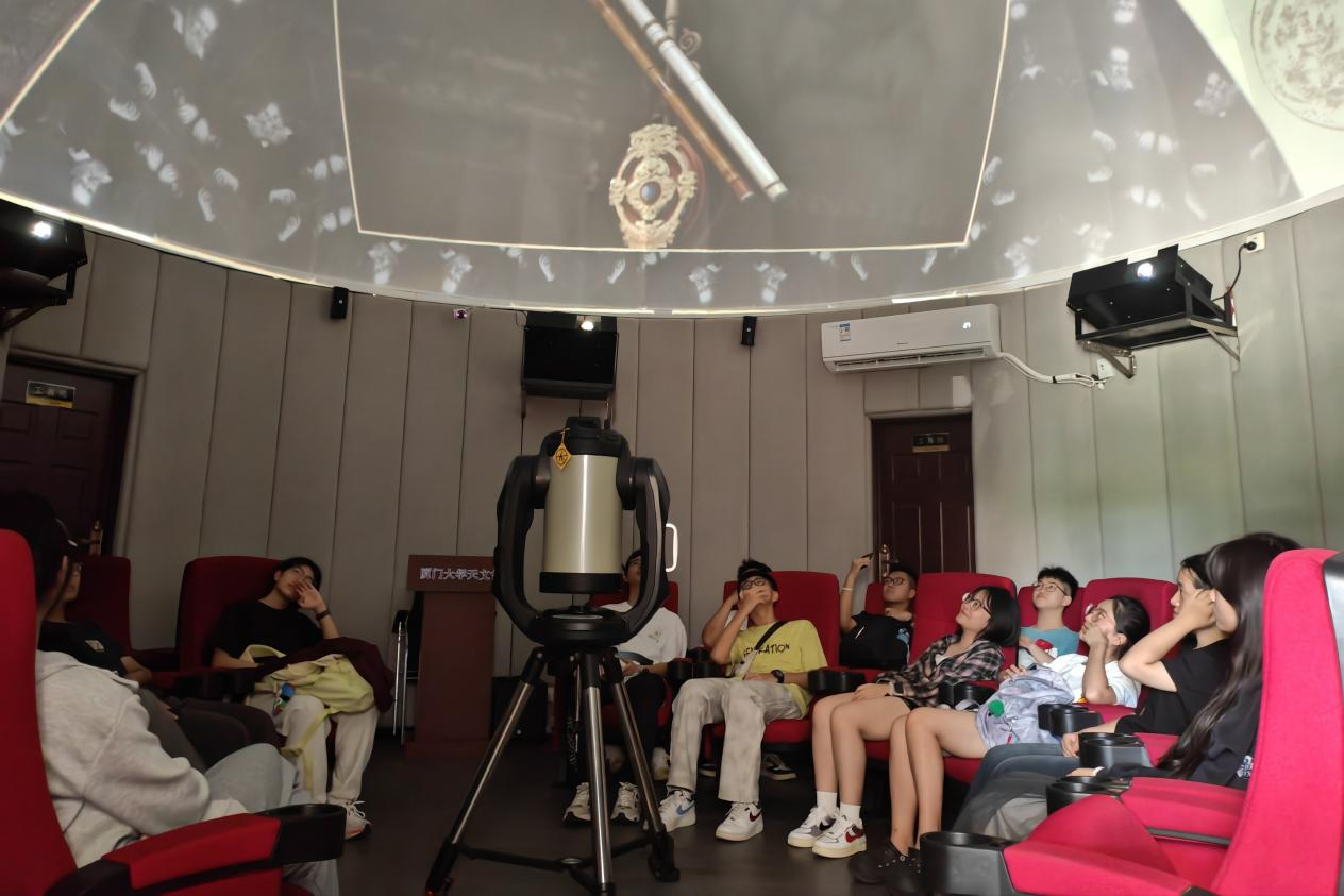 怀着兴奋与期待的心情步入天文台,同学们首先进入虚拟天球系统天象厅,沉浸式观看了解天文学的悠久历史,观看过程中,大家仿佛置身于浩瀚的宇宙之间,感受到了星空的壮丽与神秘。