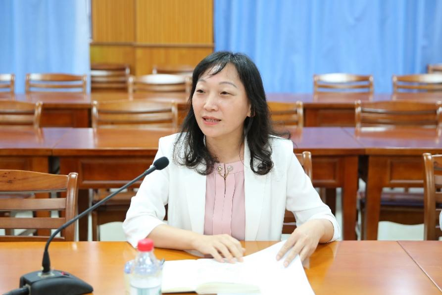 陈志伟首先宣布了学院“区域国别的国际中文教育”“国际中文文明交流与互鉴”“国际中文语言教育与测评”3个科研团队的成立,并介绍了各个团队的负责人及成员。随后,她解读了学院此前印发的科研方面相关文件细则,为会议的顺利进行奠定了基础。她强调科研团队建设对于学院发展的重要性,并期待通过此次会议,能够激发更多创新思维,为学院的科研工作注入新的活力。
