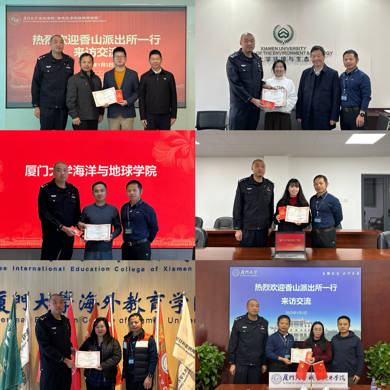 为感谢厦门大学翔安校区辅导员在防诈骗工作中的辛苦付出,1月2日,香山派出所联合校区保卫办,结合2024年度翔安校区各学院开展防诈骗宣传教育工作情况,为校区6名辅导员颁发“优秀反诈辅导员”荣誉证书。