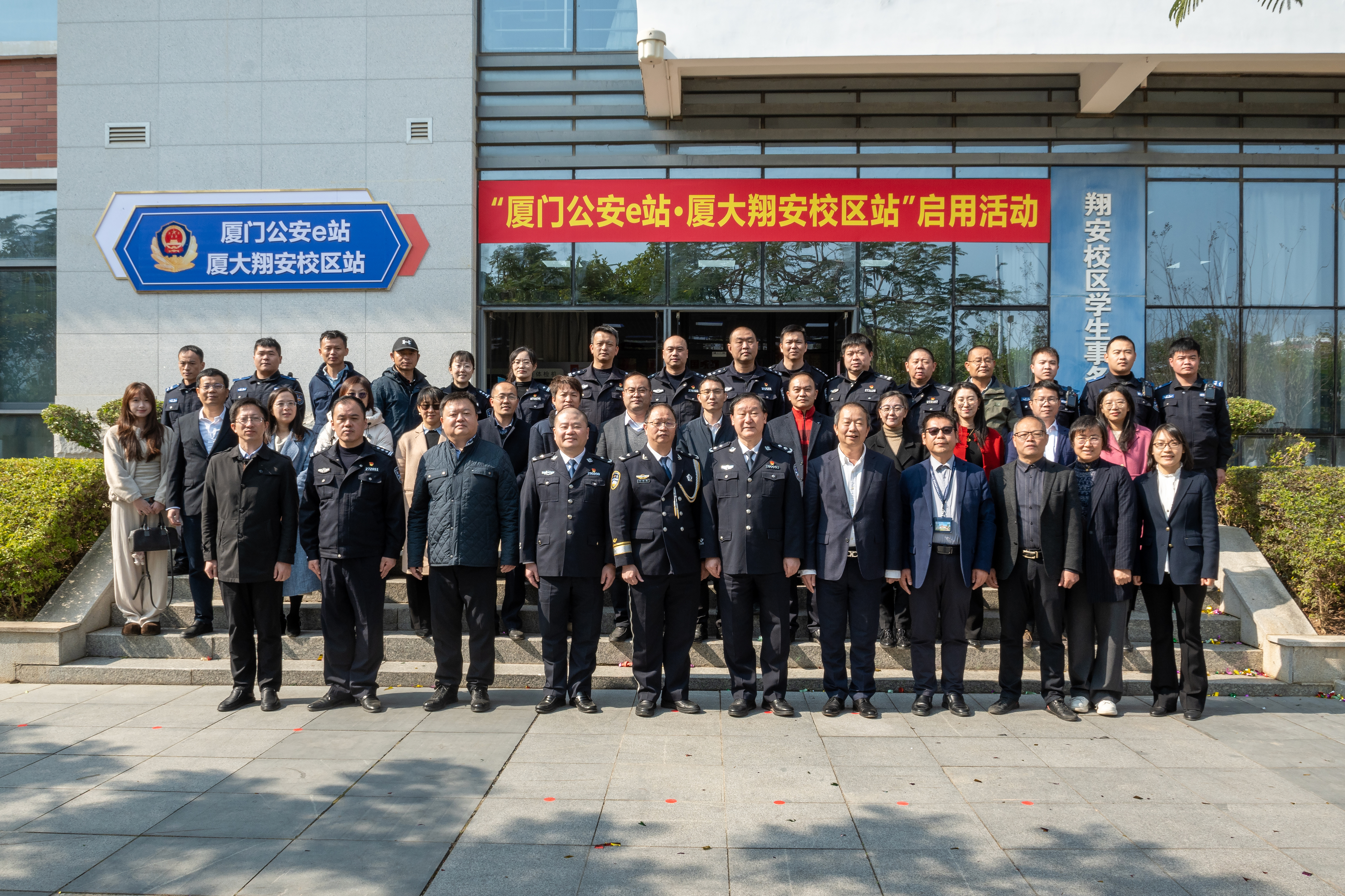 厦门市公安局党委副书记、机关党委书记陈志洪,厦门市翔安区副区长、公安分局吕培勤局长,厦门市公安局翔安分局政委吕春杭,香山街道党工委副书记黄卫东,厦门大学陈光校长助理,翔安校区保卫办公室主任陶元升共同为“厦门公安e站·厦大翔安校区站”揭牌。活动由厦门大学翔安校区管委会副主任刘俊杰主持。“厦门公安e站·厦大翔安校区站”启用将为校区师生带来更加便捷、高效、贴心的警务服务体验,切实提升师生办事的满意度、获得感、幸福感。