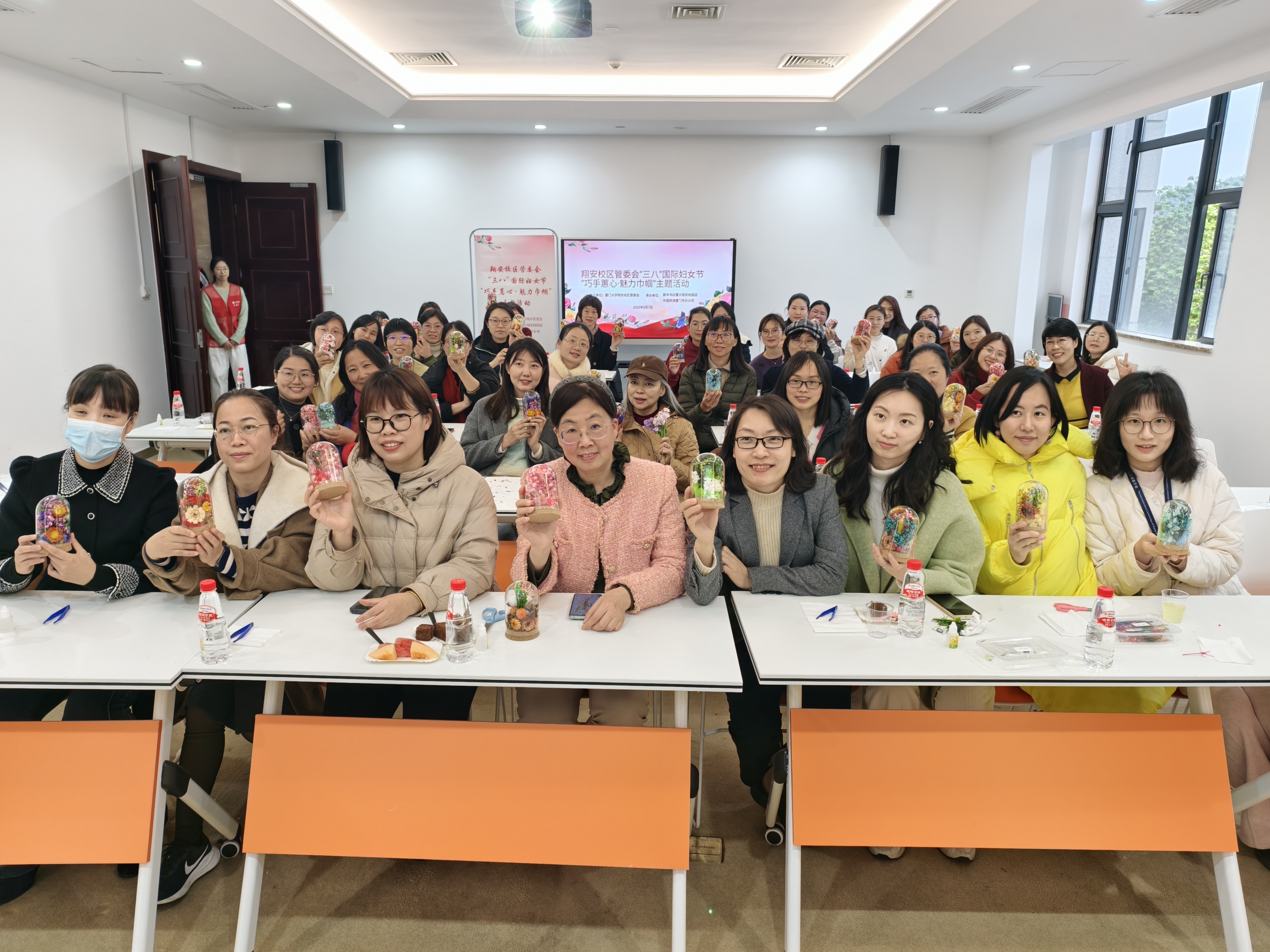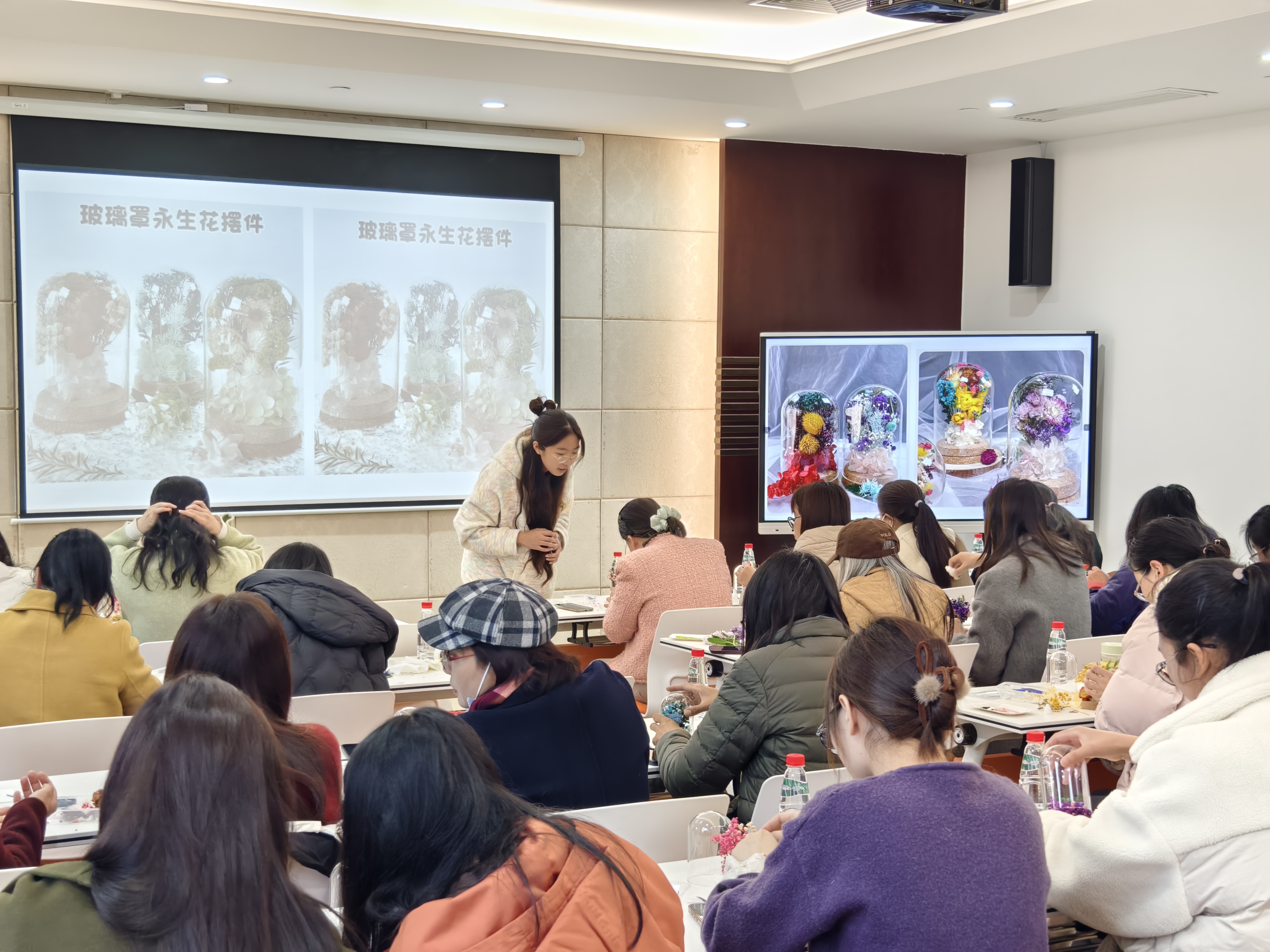 3月7日下午,翔安校区管委会“三八”国际妇女节“巧手蕙心·魅力巾帼”主题活动在新华书店厦大翔安校园店研讨室举行。翔安校区管委会各部门及校区各单位女教职工50余人参加活动,体验永生花玻璃房摆件手工制作。