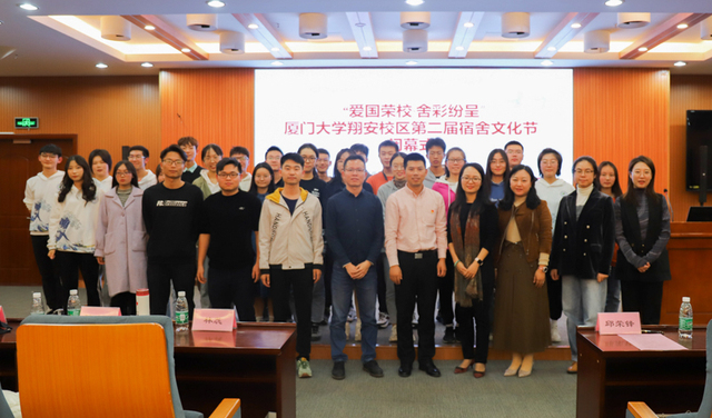 12月4日晚7点,翔安校区第二届宿舍文化节闭幕式在希平楼C2-403顺利举行。翔安校区团工委书记、校团委副书记林蕊,学生办公室秘书石义凯,公寓办秘书张艺程,航空航天学院辅导员刘群,电子科学与技术学院辅导员许通,生命科学学院辅导员肖悦悦,海洋与地球学院党委副书记邱荣锋,团委书记陈启妍,团委副书记侯佳君、蔡笑霜以及辅导员黄良等出席活动,各获奖宿舍成员以及学生代表参加活动。
