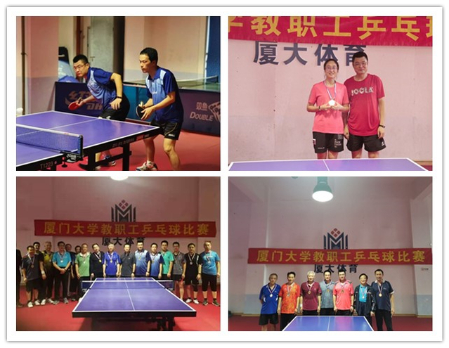 11月14日,学校在王清明游泳馆二楼乒乓球场举行厦门大学第7届“校庆杯”教职工乒乓球双打比赛,药学院教工陈怀锋和林煜杰、韩大雄和李福男分别组成两支男双组合参赛。经过多轮高水平激战,最终陈怀锋、林煜杰组合荣获乒乓球双打比赛冠军。
