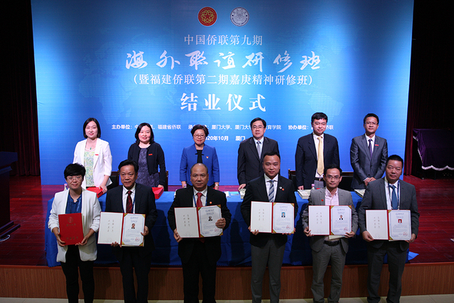 福建省侨联副主席张瑶、厦门市侨联副主席邓飚、中国侨联联谊联络部综合外事处处长张亮、厦门大学党委统战部副部长秦红梅、海外教育学院/国际学院党委副书记陈向柳、副书记吴荻一同出席了结业典礼并为全体学员颁发结业证书。