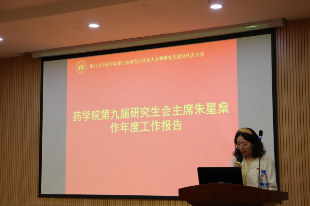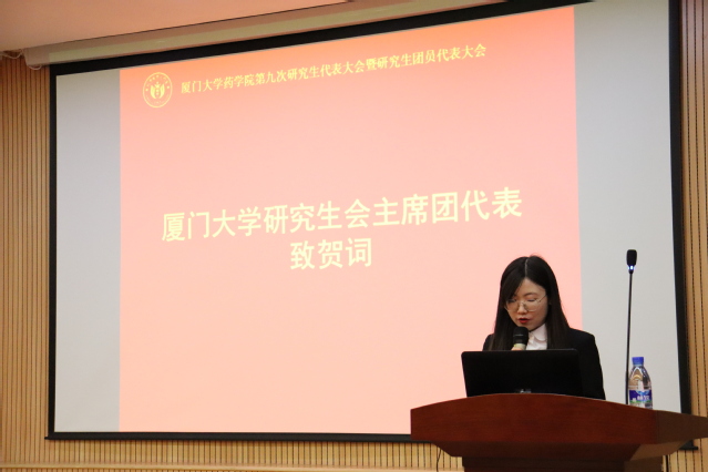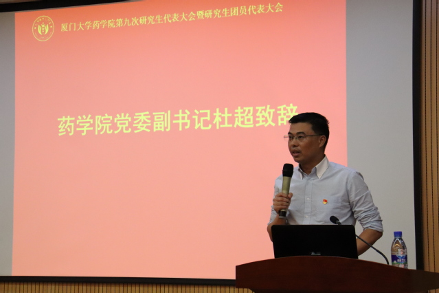 10月27日,药学院第九次研究生代表大会暨研究生团员代表大会在庄瑾楼426报告厅召开。药学院党委副书记杜超,院团委书记陈国全、院团委副书记范荣,厦门大学研究生会主席团成员裘依梅,部分兄弟学院研究生会主席团成员代表,药学院第九届研究生会、研究生团总支委员以及来自全院各年级的研究生、研究生团员代表等参加了大会。大会由药学院2020级硕士研究生尹思航主持。