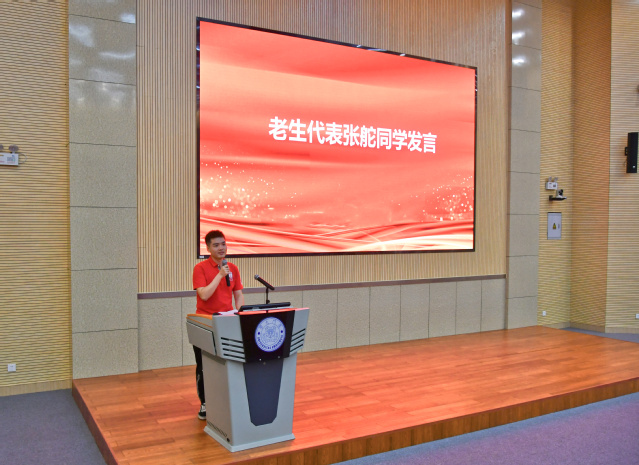 2017级博士研究生张舵和2020级本科生刘楚熠作为老生和新生代表先后发言,先后介绍了自己的学习科研经验和对大学生活的美好憧憬。
