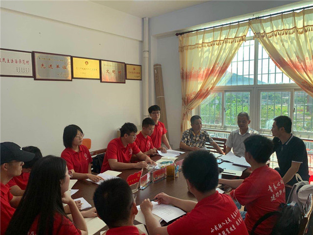 随后在村民委员会主任的带领下,实践队员来到了西源小学调研。学校校长和老师们热情接待了实践队一行,并介绍了学校的基本状况。西源小学是一所风景优美的农村寄宿制小学,标准化硬件配备齐全。通过与校长访谈了解到,西源村教师调动频繁、流失严重,且学校未配备心理咨询室和医务室。针对西源小学存在的问题,实践队针对性地指出,学校与西源小学可以此为切入点,通过校地共建实现人才共享,发挥高校优势,补足西源小学的人才短板。