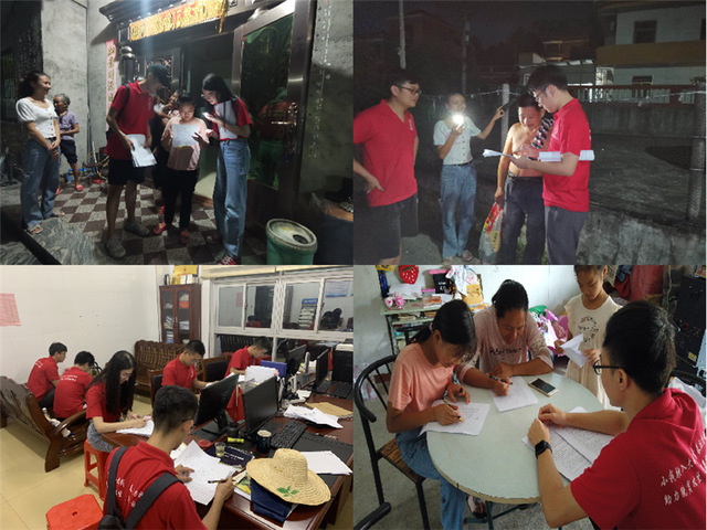 为了全面了解西源村民对乡村教育的观点,实践队分成5组同时开展入户调研。入户调研包括问卷调查以及与学生、家长访谈。针对村里常住人口、在市区或镇区常住人口、长期在外务工和居住人口、常住人口适龄儿童数、划片入学情况、上学距离、现有小学和教学点办学条件现状进行了调研。在村民走访中,实践队员普及了国家教育政策,与家