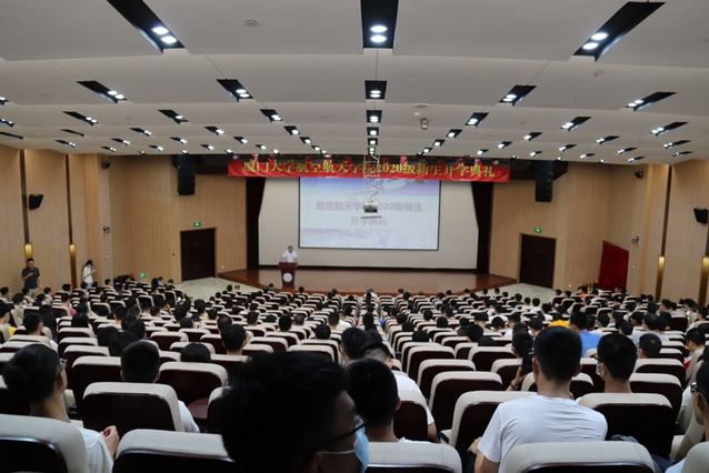 9月13日上午九时,航空航天学院2020级新生开学典礼在德旺图书馆举行,出席本次典礼的有航空航天学院党委书记王康平、常务副院长尤延铖、副院长侯亮、党委副书记林蔚、机电工程系副主任祝青园、动力工程系副主任王希、仪器与电气系副主任郑高峰、一班班主任陈桂鹏、二班班主任黄澜涛、三班班主任曾涛、六班班主任马骥、八班班主任闫成、九班班主任金华、辅导员水永生、刘群以及全体2020级本科生新生和研究生新生,会议由学院党委副书记张晴主持。