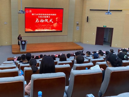 2020年8月23日15:00,厦门大学百年校庆校史剧目《长汀往事》启动大会在翔安校区学武楼B101报告厅举行。校党委常委、宣传部部长、教师工作部部长徐进功出席大会并作动员讲话,校学生工作部部长李峰,校档案馆馆长石慧霞,航空航天学院党委书记王康平,校史专家、社会与人类学院教授郑启五,百年校庆文体组、翔安校区各办公室有关负责同志,翔安校区各学院党委副书记、辅导员,《长汀往事》导演组成员、全体演职人员参加大会,翔安校区管委会副主任黄宇霞主持大会。