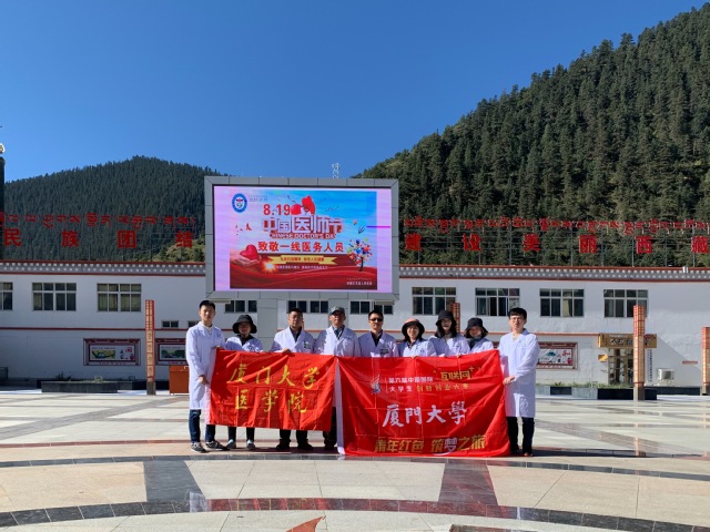 8月18日上午,第六届中国国际“互联网+”大学生创新创业大赛厦门大学青年红色筑梦之旅队伍——医学院天路行实践队5名研究生志愿者在洪晓婷老师的带领下,经历两日的奔波抵达西藏自治区昌都邦达机场。厦门援藏工作组、左贡县人民医院副院长许爱珍,左贡县卫健委扎西平措医生到机场迎接,为队员们献上洁白的哈达。这是医学院第六次组织“天路行”实践队来到西藏高原,也是连续第四次来到厦门市对口援助的西藏昌都市左贡县开展基层医疗卫生支援。