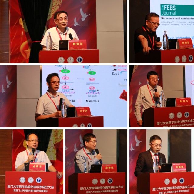 大会开幕式后,举行了“新医科消化病学高峰论坛”。厦门大学医学院院长韩家淮院士、厦门大学副校长周大旺教授、生命科学学院林圣彩教授、信息学院俞容山教授、中华消化内镜学会候任主任委员金震东教授、中华消化学会副主任委员房静远教授、附属中山医院副院长任建林教授等分别围绕肠道微生态与肠道免疫、机体代谢、肝肠循环、消化系统肿瘤,以及超声内镜介入治疗、医学与人工智能等方面做专题报告。