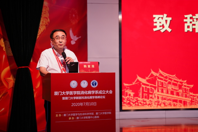 7月10日, “厦门大学医学院消化病学系成立大会暨厦门大学新医科消化病学高峰论坛”在附属中山医院顺利举行,标志着学校综合改革在医学领域取得新进展,医学部科系合一改革实质推进,医学院临床医学学科交叉融合、协同发展进入一个新阶段。
