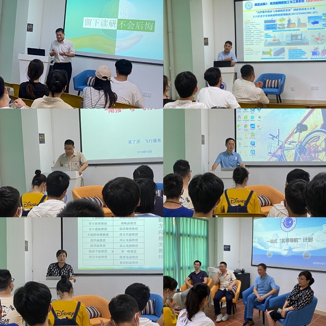 6月28日、29日,一站式“名师导航”计划——师生分享交流活动在映雪五创新创业工作坊顺利开展。活动邀请了自动化系副主任王颖、机电工程系副主任祝青园、仪器与电气系副主任郑高峰、动力工程系冮铁强、飞行器系吴了泥走进“一站式”空间,与同学们进行面对面交流,介绍学院各专业学科前沿、专业特色、人才培养等情况,鼓励优秀本科生继续攻读本院研究生。老师们还结合人生经历与个人思考,为正处人生十字路口的同学们提出意见和建议,帮助他们做好今后的生涯规划和人生选择。