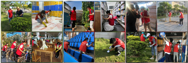 本次劳动教育活动共设有图书整理岗、餐厅服务岗、绿化养护岗、校车清洗岗、场馆保洁岗、校园安防岗等6大类、近百个劳动岗位,劳动内容涵盖了图书整理上架、餐厅卫生清洁、绿化修剪养护、公共自行车整理、体育场馆清洗等,劳动区域覆盖校园各个角落。在劳动中,毕业生们热情高涨、全情投入,认真细致地做好每项工作,在美化校园环境的同时,体会到了劳动带来的乐趣,也切身感受了后勤服务工作的辛苦与付出。活动结束时,毕业生们纷纷表示,感恩母校的教育与培养,在临别之际能再次穿上红马甲,参加这样一堂特殊的劳动教育课,为母校散一分热、 发一分光,于自己而言有着特别的意义和收获。